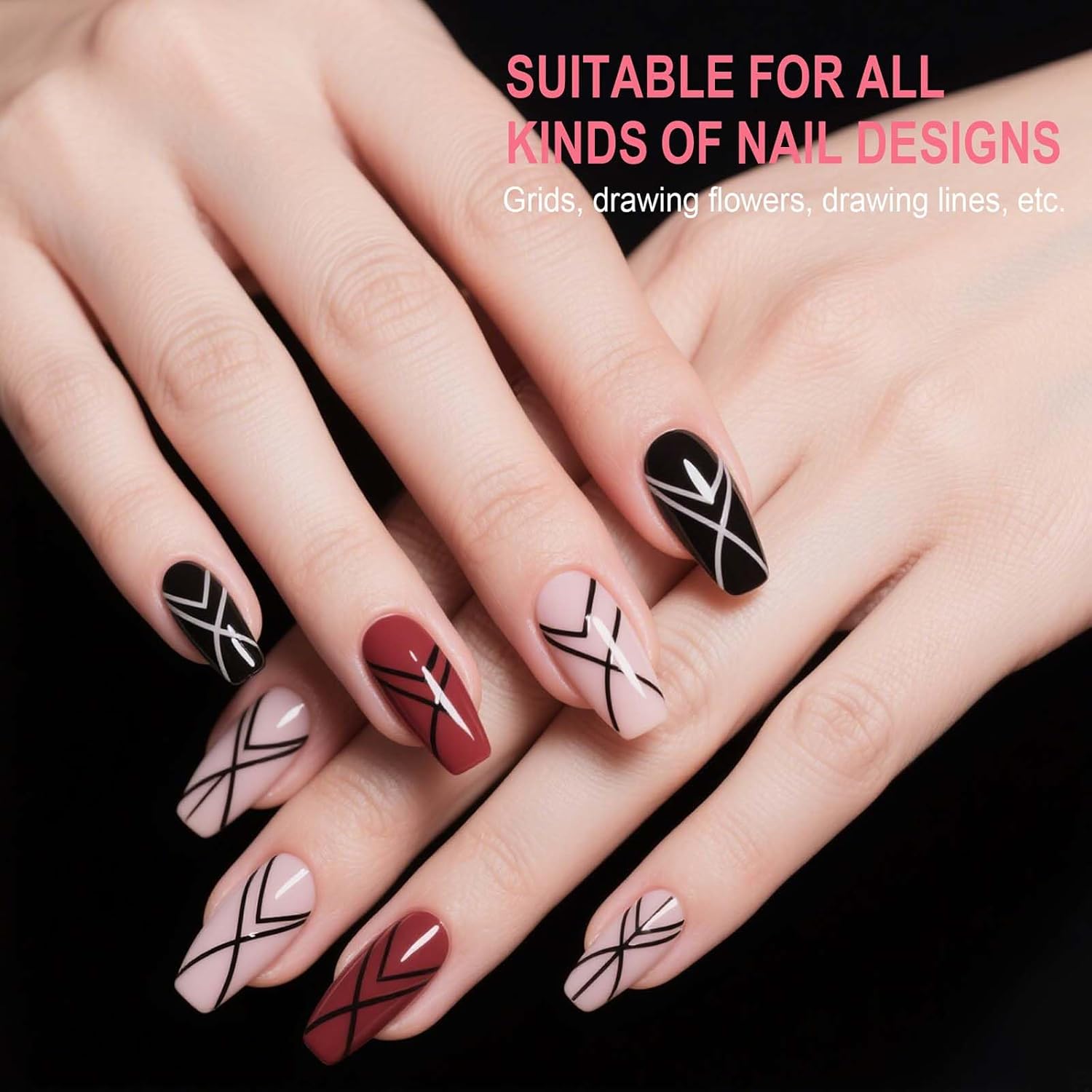 • 【PACKAGE CONTAINS】5Pcs Nail art pens for nail liner, sizes for nail liner brushes heads include 5/12/13/20/25mm.