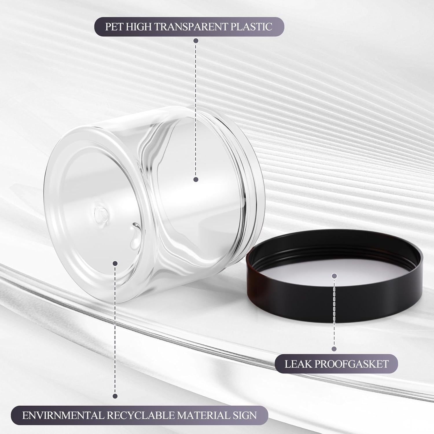 • Quality Material: the plastic jars with lids are made of quality plastic, without odd smell, does not contaminate your skincare products, stable, high temperature resistance, sealed storage and leak proof