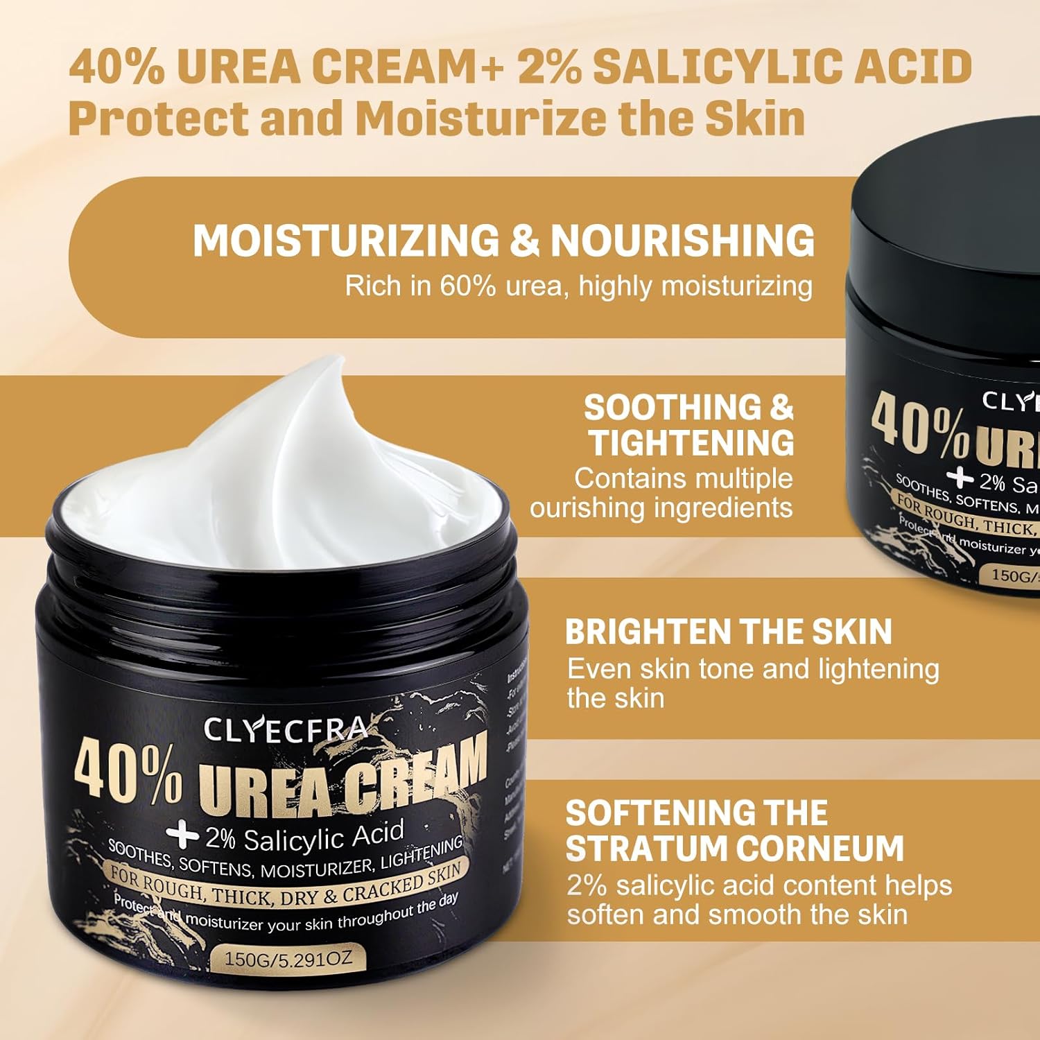 • 【DEEP MOISTURIZING FORMULA】Our cream combines 40% high concentration urea and 2% salicylic acid. Urea can strongly moisturize the bottom layer of the skin, deeply hydrate and lock in water for a long time, solving the problem of dry skin from the root; Salicylic acid gently removes aged keratin, promotes skin metabolism, and works together to keep the skin hydrated, elastic, and tender at all times