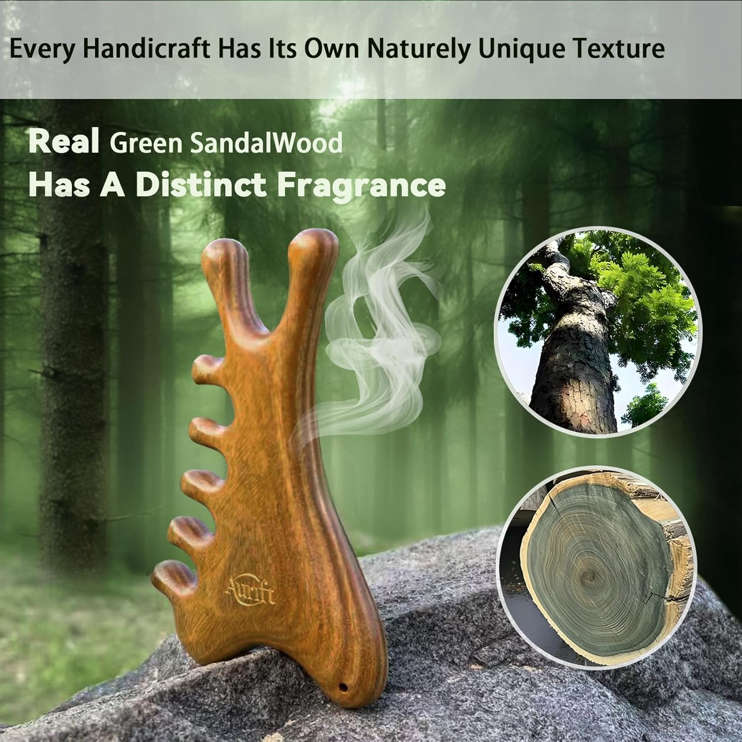 4-in-1 Gua Sha Tool for Face & Body, Natural Green Sandalwood โ€“ Lymphatic Drainage, Jaw Lifting & Nose Sculpting, Head Massage Comb for Stress Relief, Home Office Self Care Gifts for Mom Girl Friend