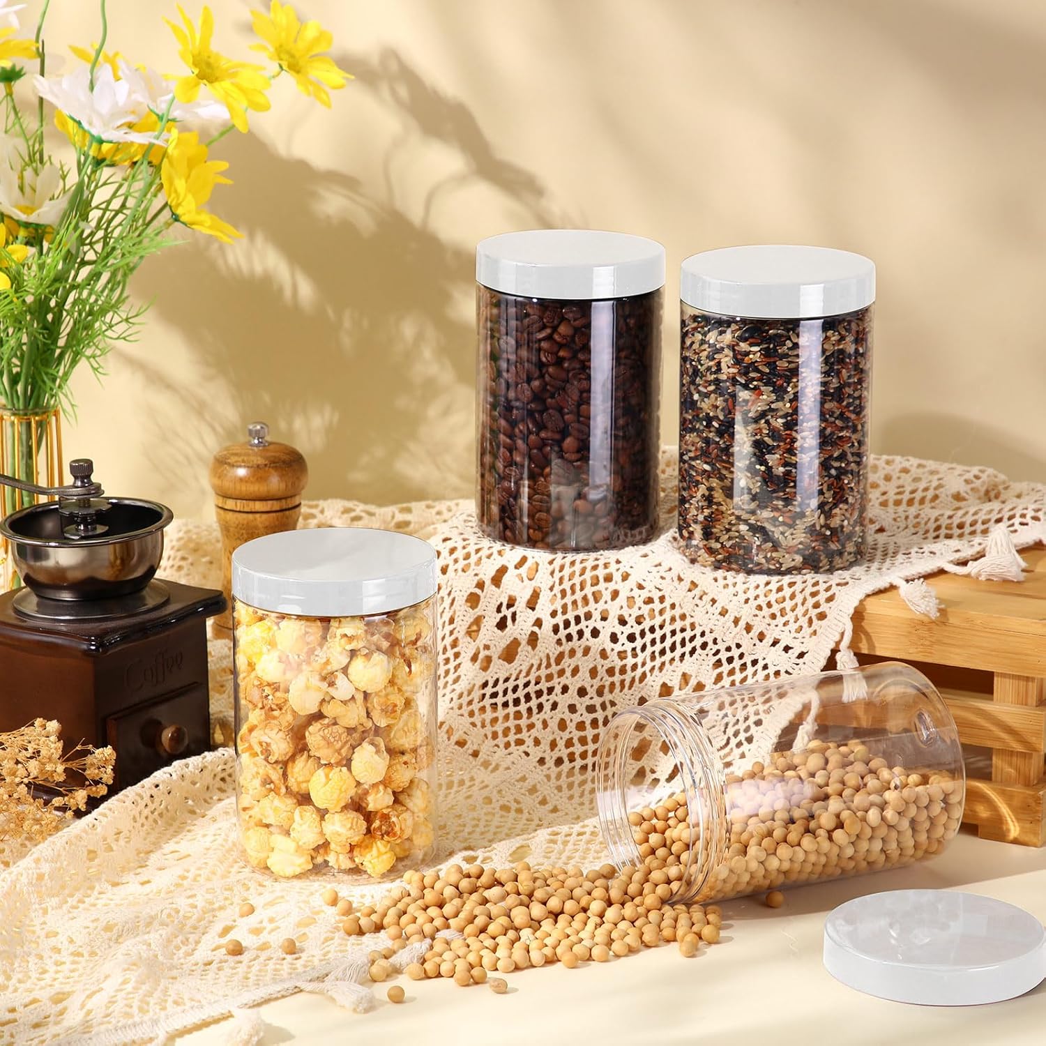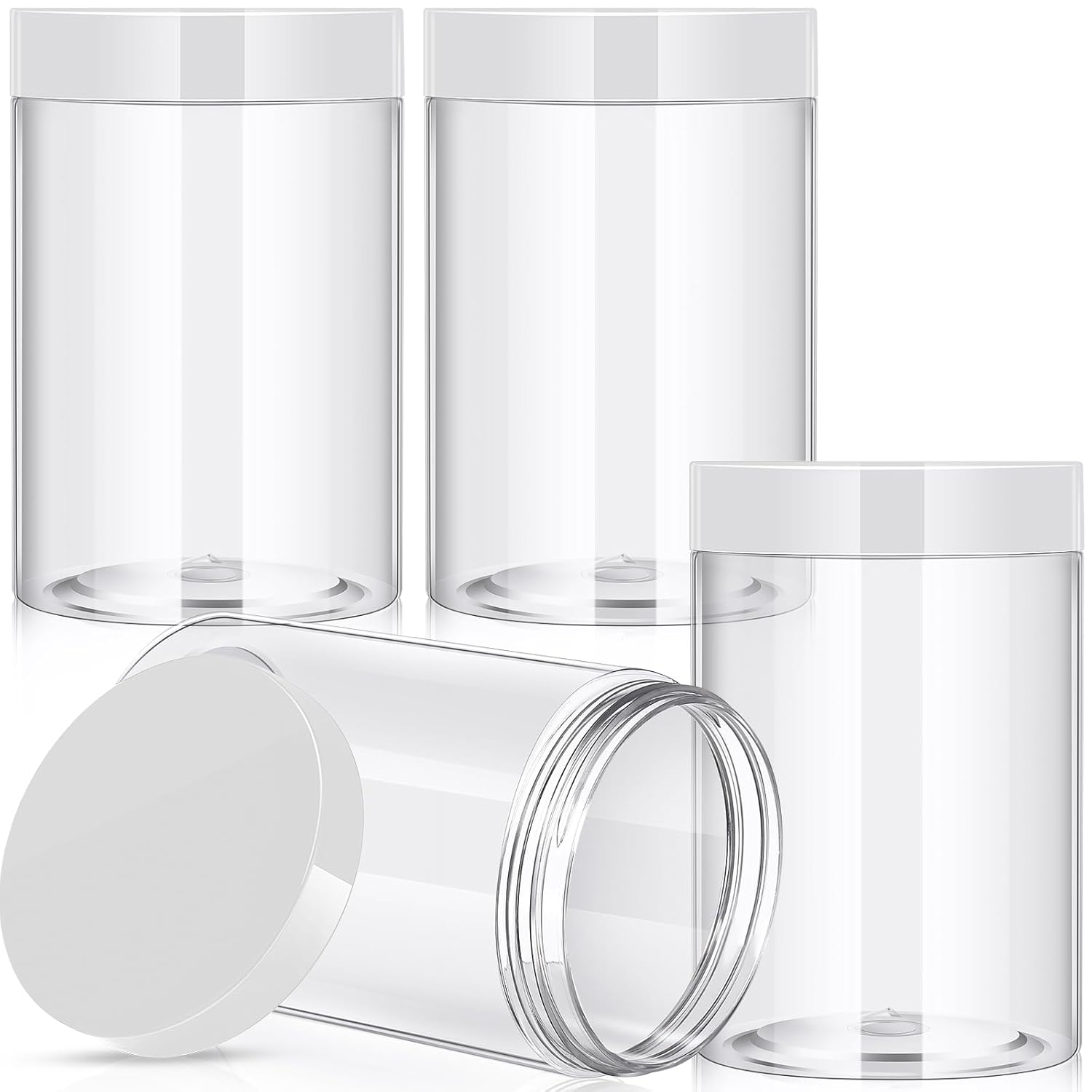 • What You Receive: there are 4 pieces plastic jars with clear screw-on lids; They are reliable and refillable, measuring about 27 oz in capacity
