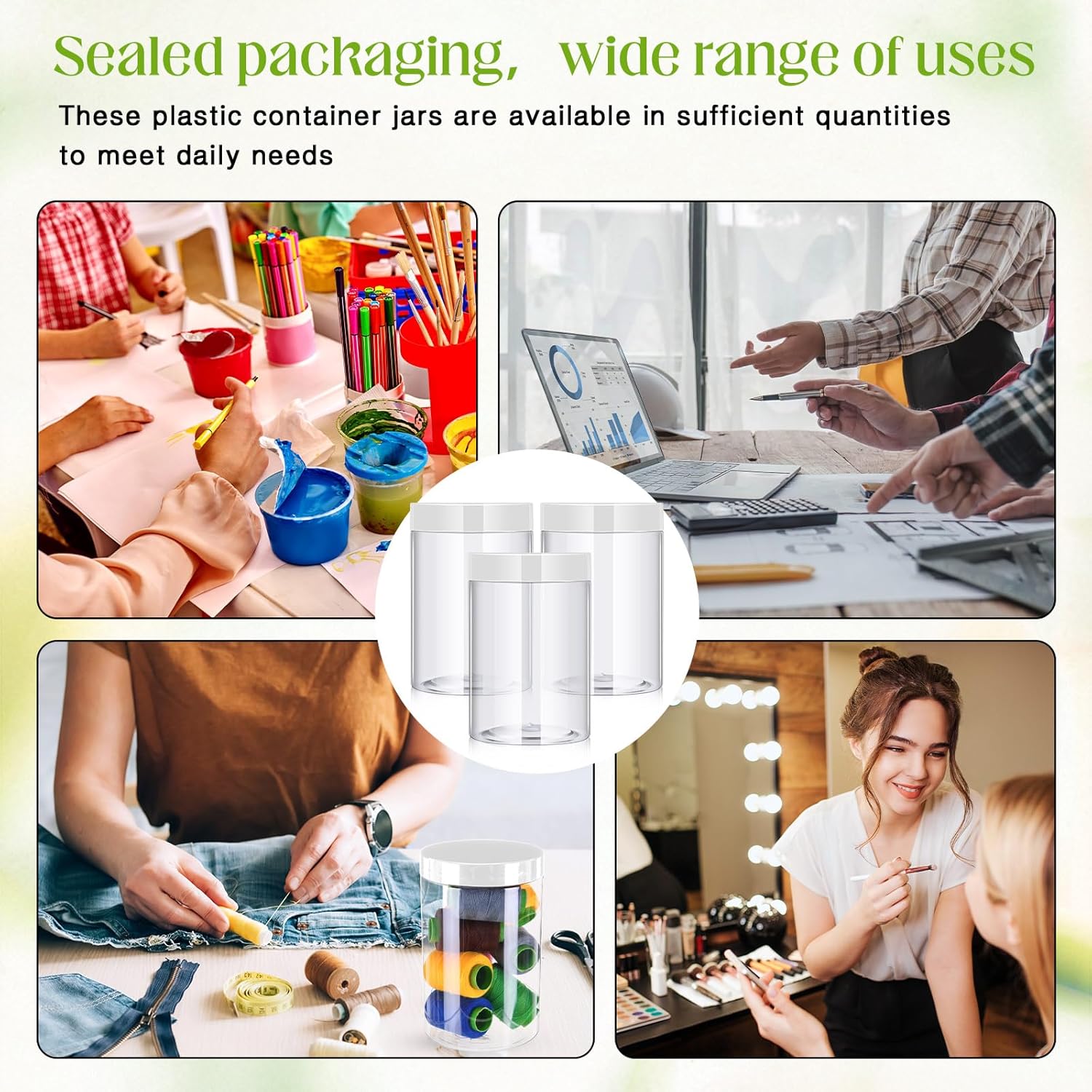 Patelai 4 Pieces Round Wide-mouth Leak Proof Plastic Container Jars with Lids for Travel Storage Makeup Beauty Products Face Creams Oils Salves Ointments DIY Making(27 Ounce,Clear)