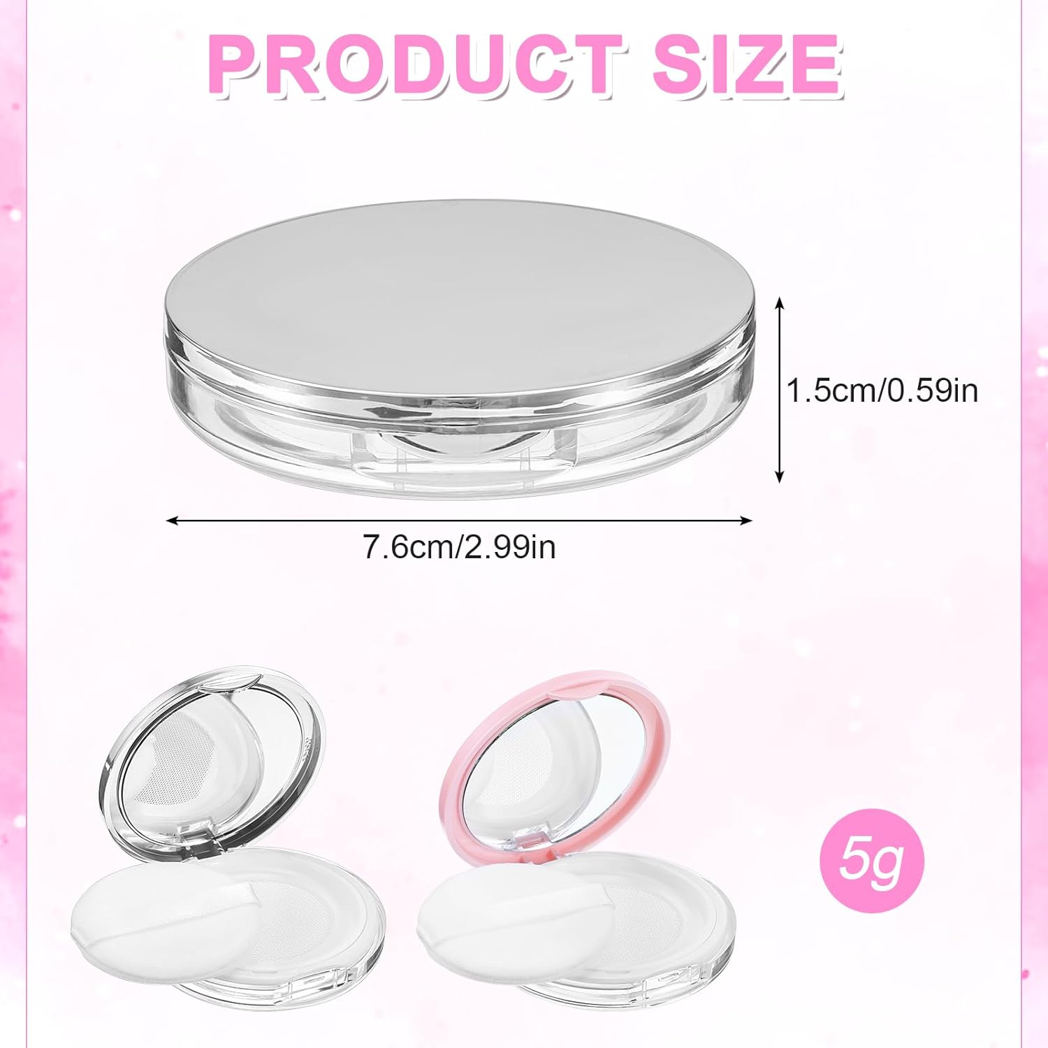 2 Pcs Loose Powder Container with Puff, 0.3-0.7oz Reusable Travel Powder Puff Case Refillable Empty Makeup Compact Box with Mirror for Travel DIY Makeup Cosmetic