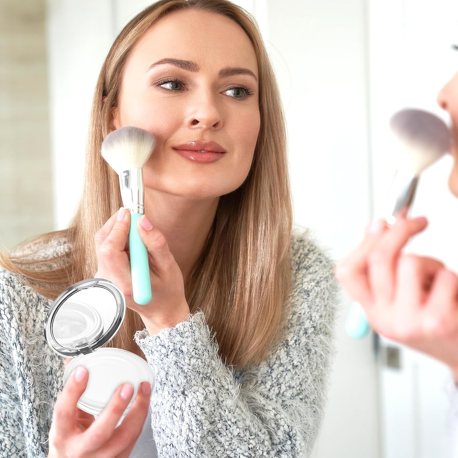 • Portable loose powder case: Our loose powder case has a diameter of 7.6cm and a thickness of 1.5cm. The small size can be easily put into your small bag. It weighs about 85g, which will not increase your burden. Even if you carry it for a long time, it will not feel heavy or cumbersome. Whether you are going out shopping, traveling, or on a business trip, you can carry your loose powder anytime and anywhere, so that you can quickly touch up your makeup when you need it