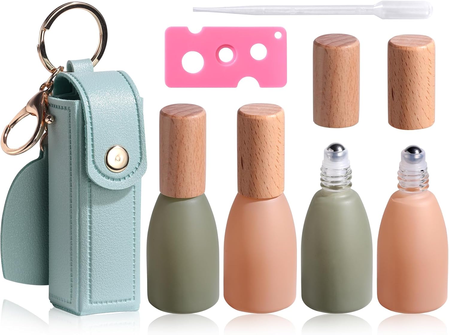• Premium Materials: Colorful thick glass bottles body with stainless steel roller balls for essential oils, plastic cap and wooden cap