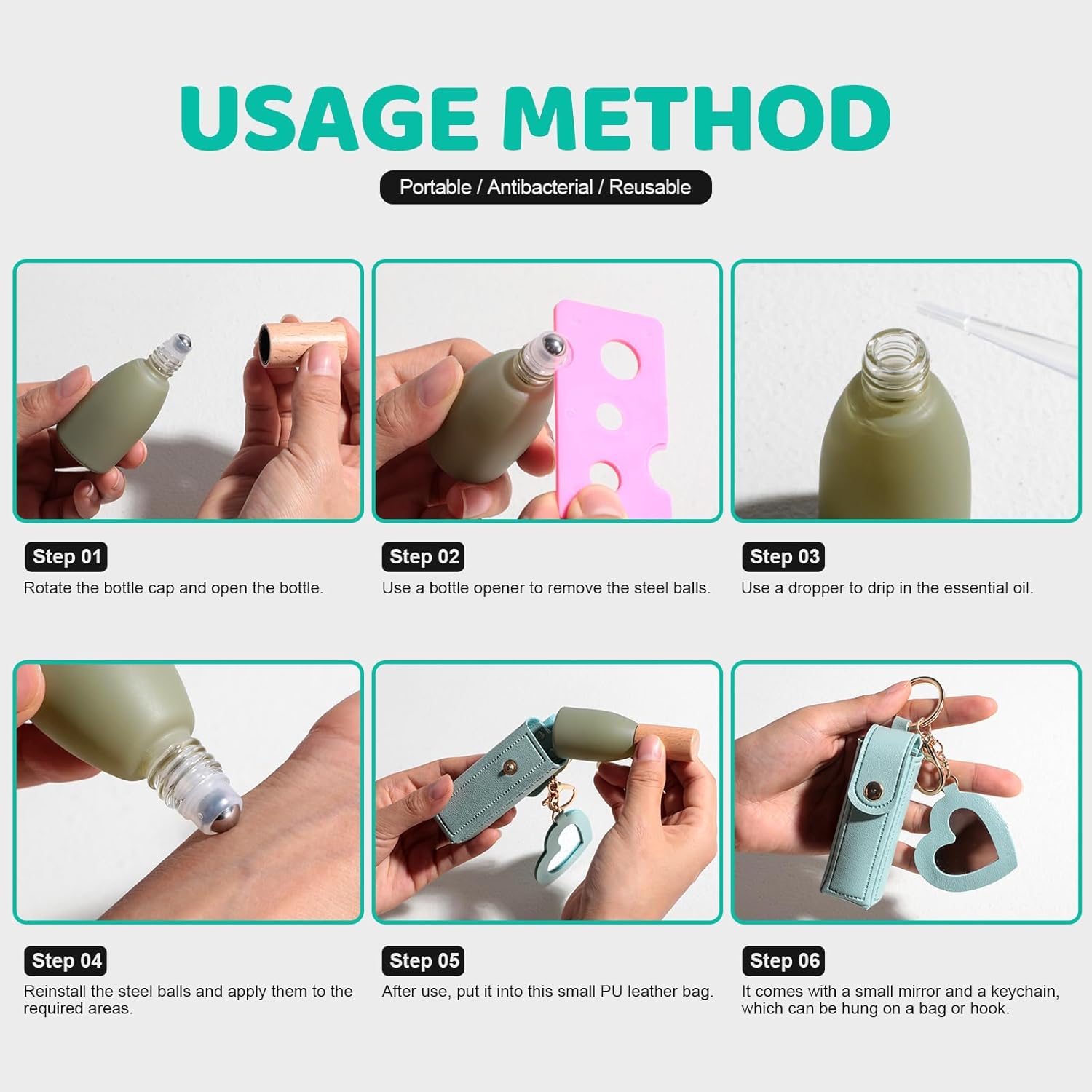• Leak Proof Roller Ball Container: The built-in gasket prevents essential oil leaking out. The thread design of the oil roller bottles mouth allows the bottle cap to fit tightly to it. No leaking or spilling when putting in your cosmetic bag or pocket