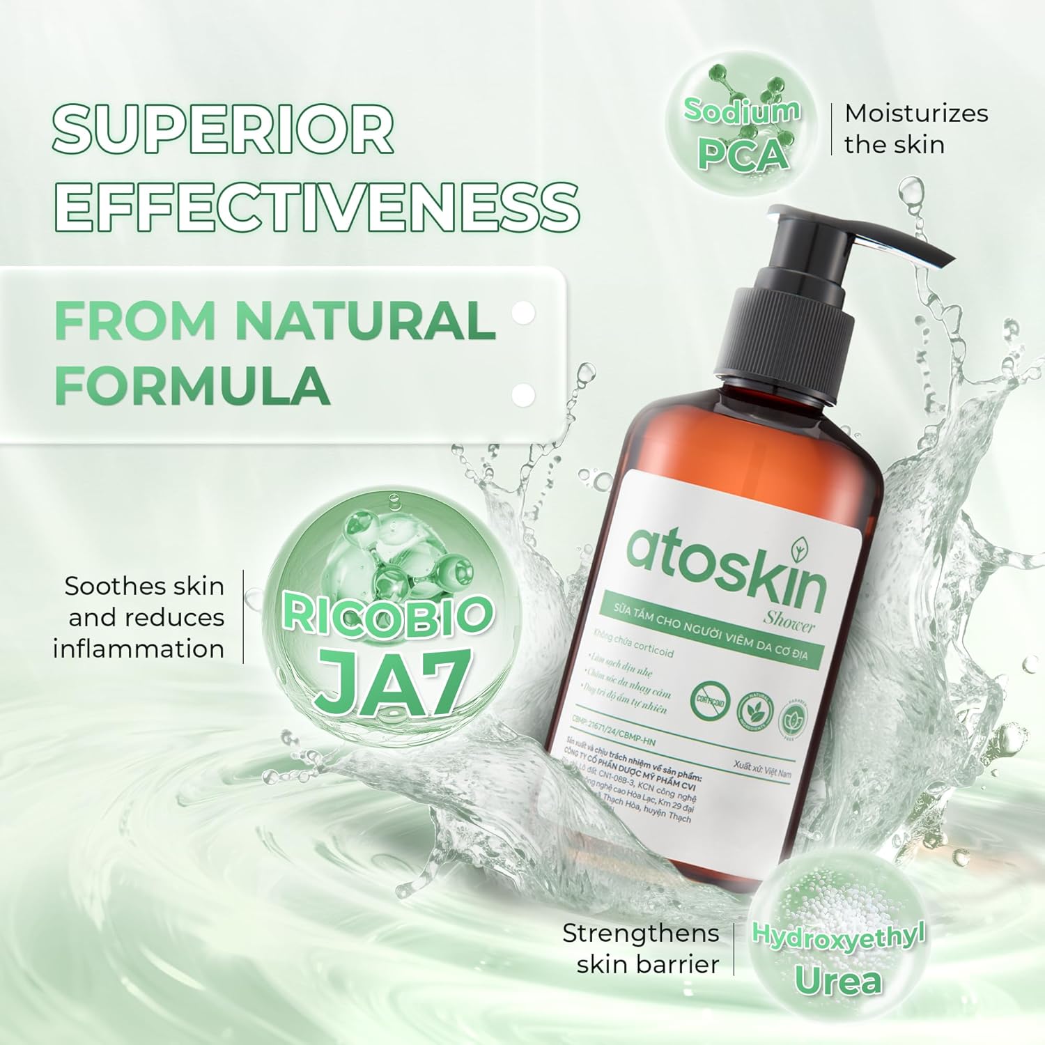 Atoskin Shower Gel for Eczema, Psoriasis, Dermatitis, and Anti-Itch Relief with RicoBio JA7 - for Atopic Dermatitis Patents (6.8 oz)
