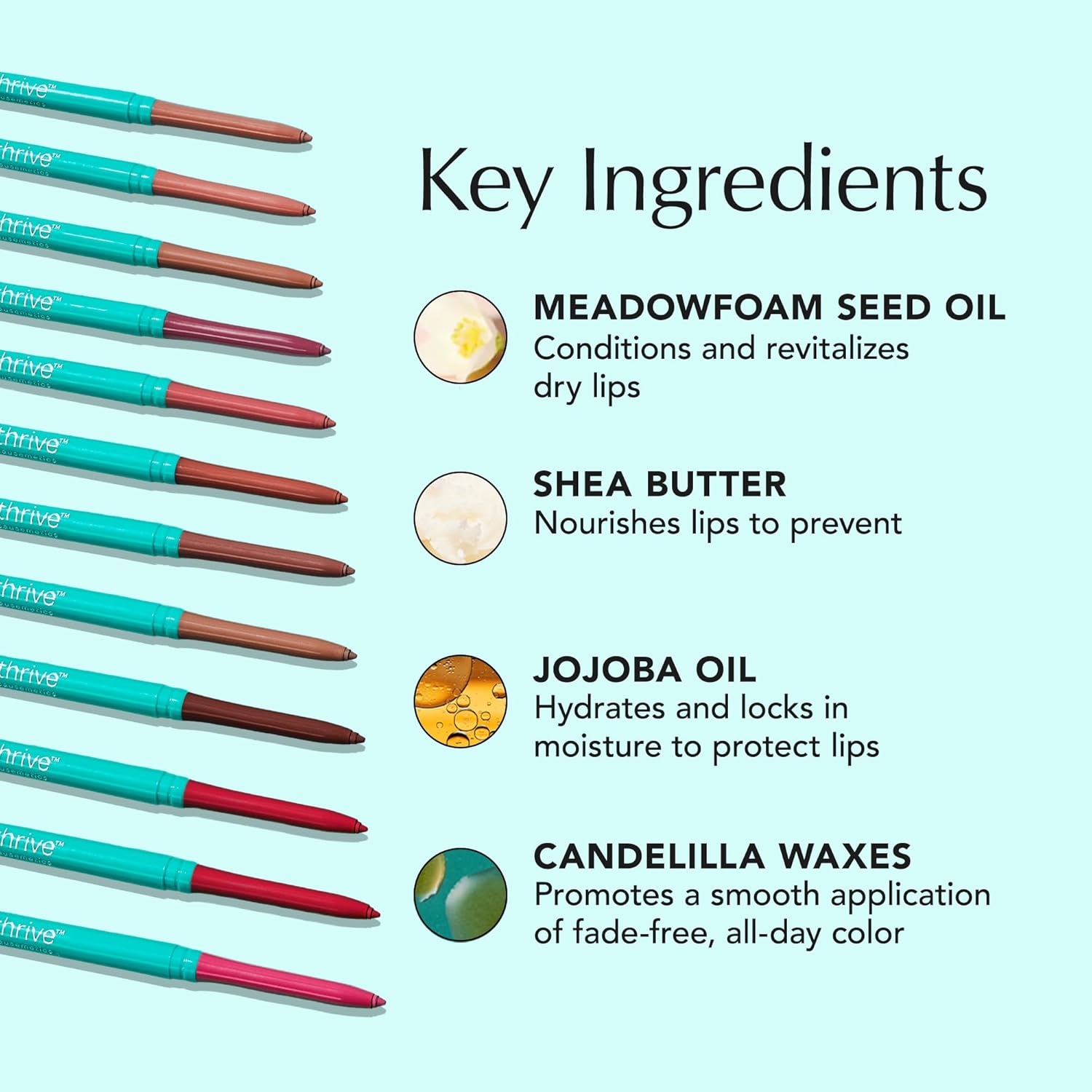 Thrive Causemetics Lip Filler Long-Wearing + Plumping Lip Liner, Shea Butter Hydrating Lip Plumper Retractable Lip Liner Pencil, Built In Sharpener, Vegan & Cruelty Free, Ebony (Fuchsia Pink)