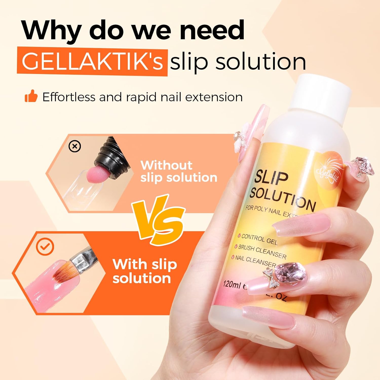 • 【Slip Solution for Poly Nail Gel】Dip your brush in slip solution to prevent poly nail gel from sticking to the brush or other nail tools, ensuring smooth application and shaping on your nails or dual forms. This slip solution also effectively removes the sticky residue from cured gel, making it ideal for both gel extension and cleanup. Additionally, it helps wipe away surface impurities, excess gel, and oils for a flawless finish.
