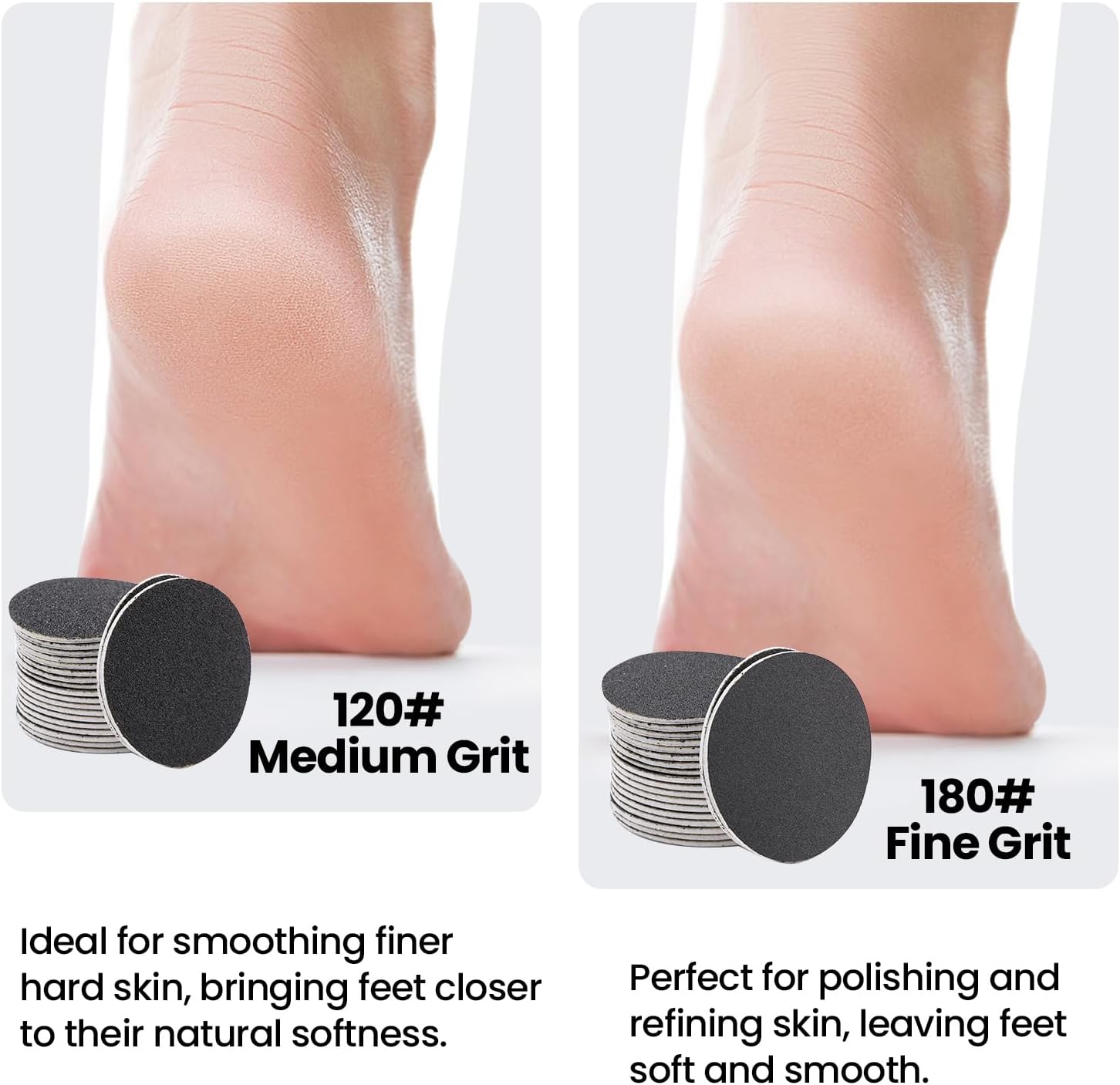 120pcs Replacement Sandpaper Refill Discs for Electric Foot File Callus Remover for Men Women Dead Cracked Hard Skin (60pcs Fine 120 Grit + 60pcs Smooth 180 Grit)