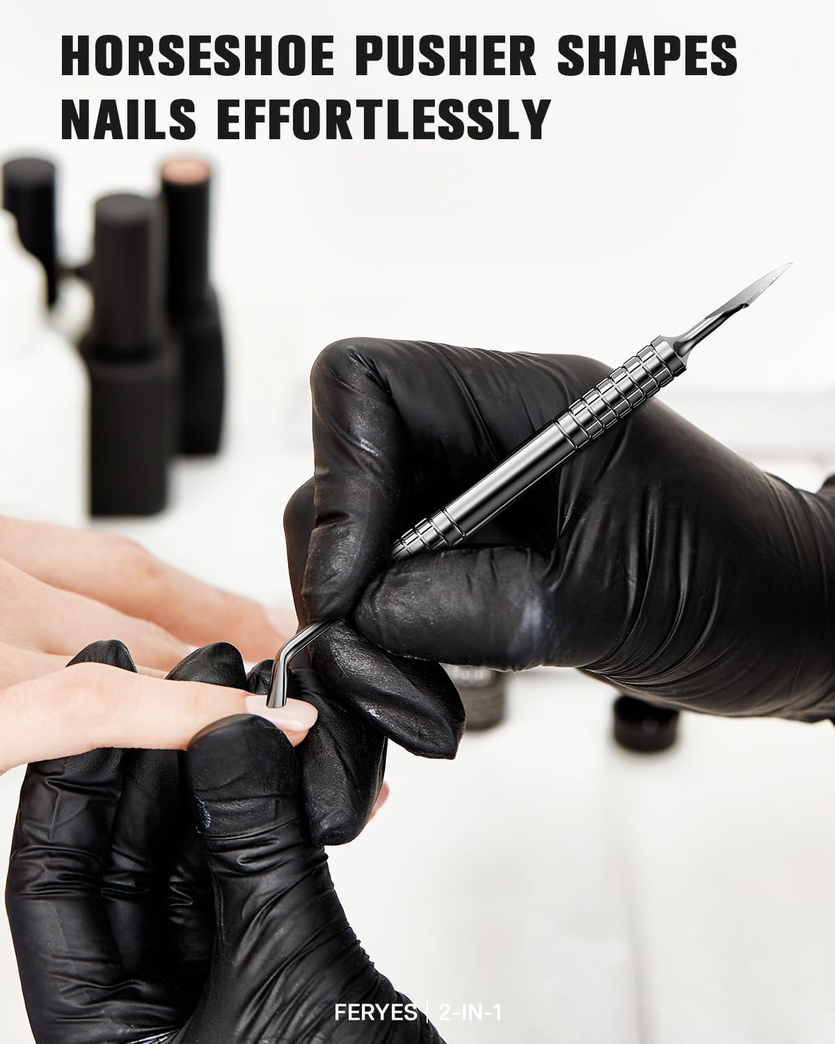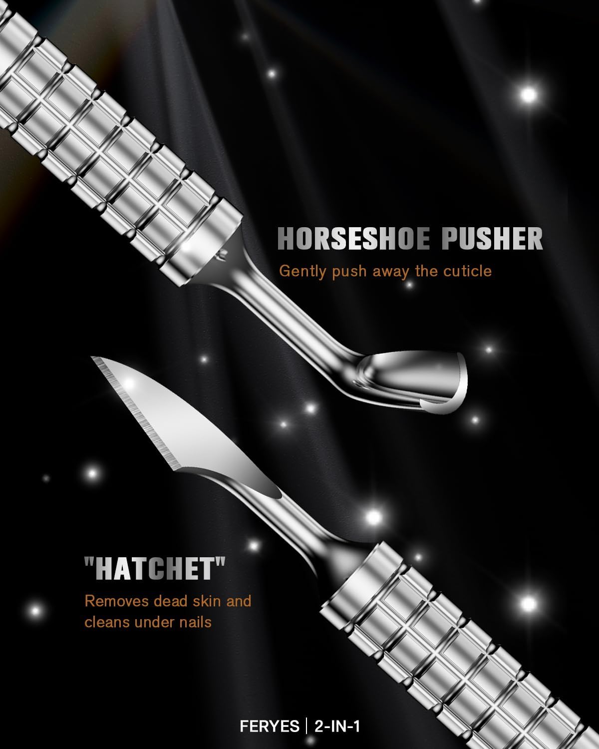 • 【Dual Heads for Surgical-Grade Precision】Engineered with a innovative Horseshoe Edge pusher and chisel edge – Achieve salon-level results by gently pushing cuticles without tearing, while the 1.5mm Chisel Edge effortlessly scrapes off gel polish, calluses, and dead skin. No more switching between 2 tools!