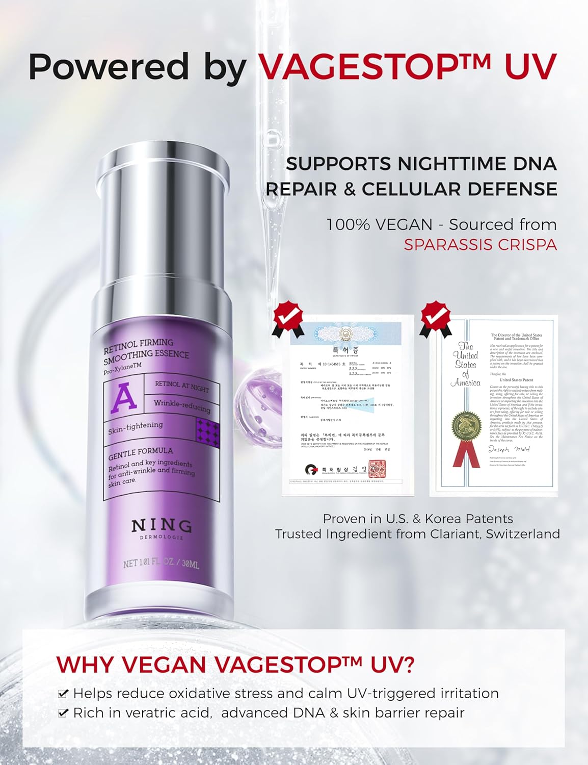 • 【Dual-Patented Defense for Night Repair】Infused with VAGESTOP UV , our formula helps repair daily DNA damage caused by UV exposure while you sleep. This korean retinol innovation offers antioxidant support, boosts collagen, and strengthens the barrier with ingredients backed by patents from the US, Korea—perfect for firming and nightly skin renewal.
