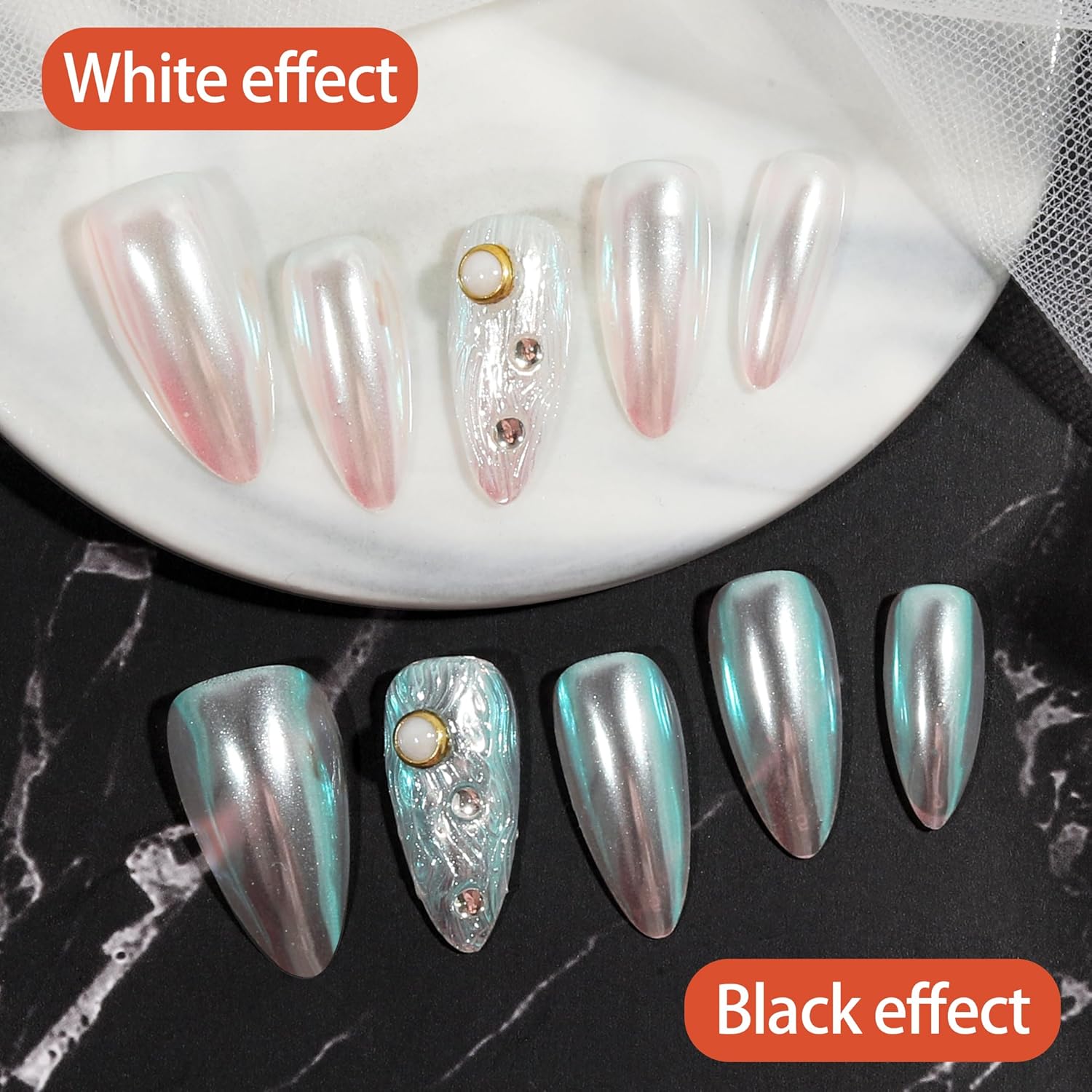 • 【PACKAGE CONTENTS】:1 PCS Marine aurora chrome nail pearl pigment powders. It needs to be used with gel nail polish and no wipe top coat. They can make many different design for your gel nail polish. It gives different color base a pearly shine for your nails