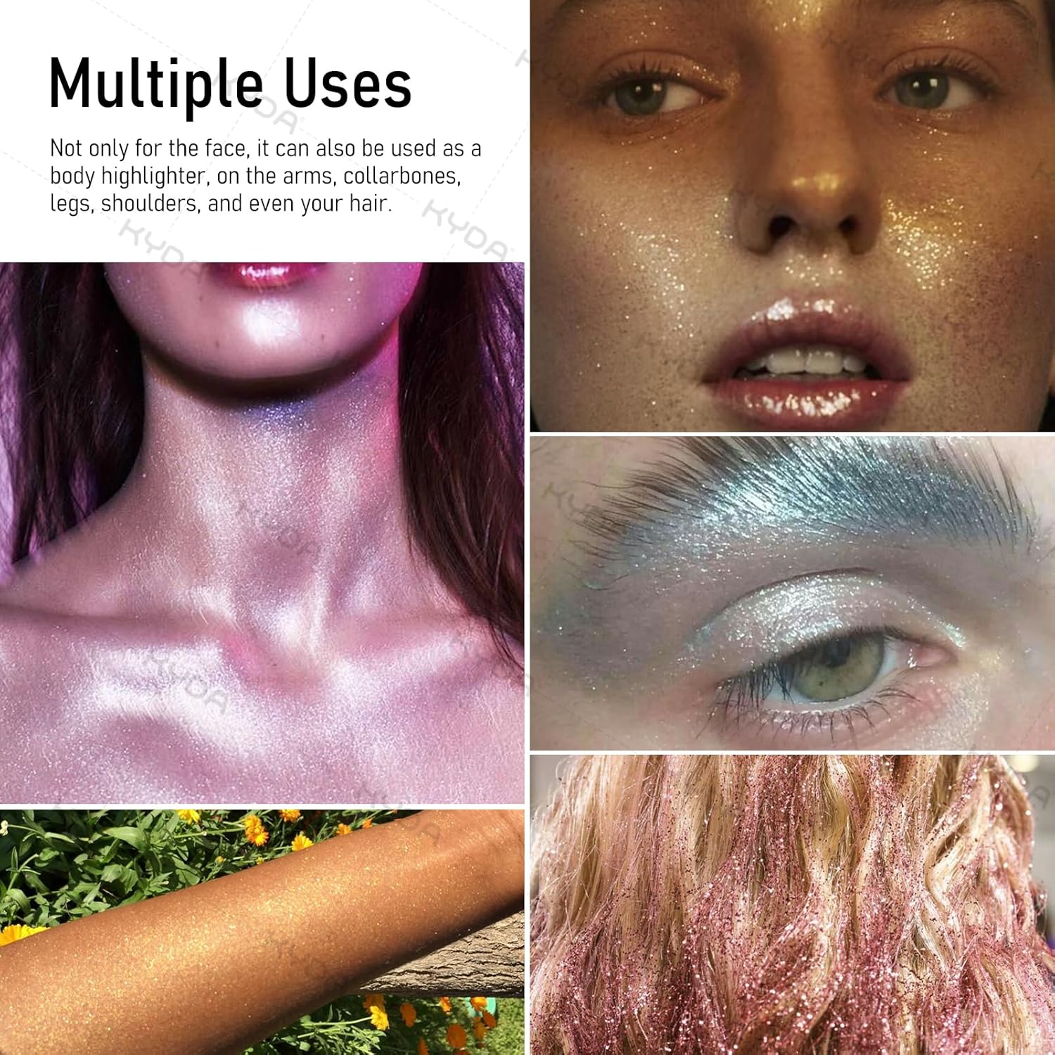 • 【Multiple Uses】Not only for the face, it can also be used as a body highlighter, on the arms, collarbones, legs, shoulders, and even your hair.