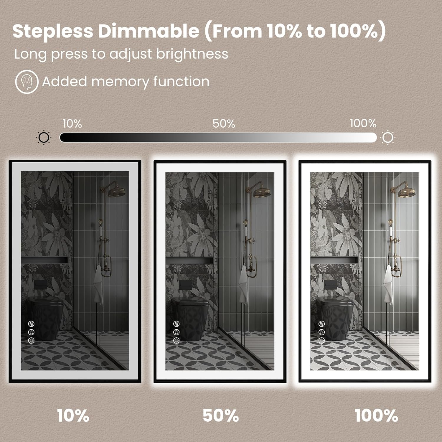 Amorho 24"x 36" LED Bathroom Mirror with Black Frame, Front Light and Backlit(Controlled Separately), Stepless Dimmable, Anti-Fog, Shatter-Proof, 3 Colors, Memory