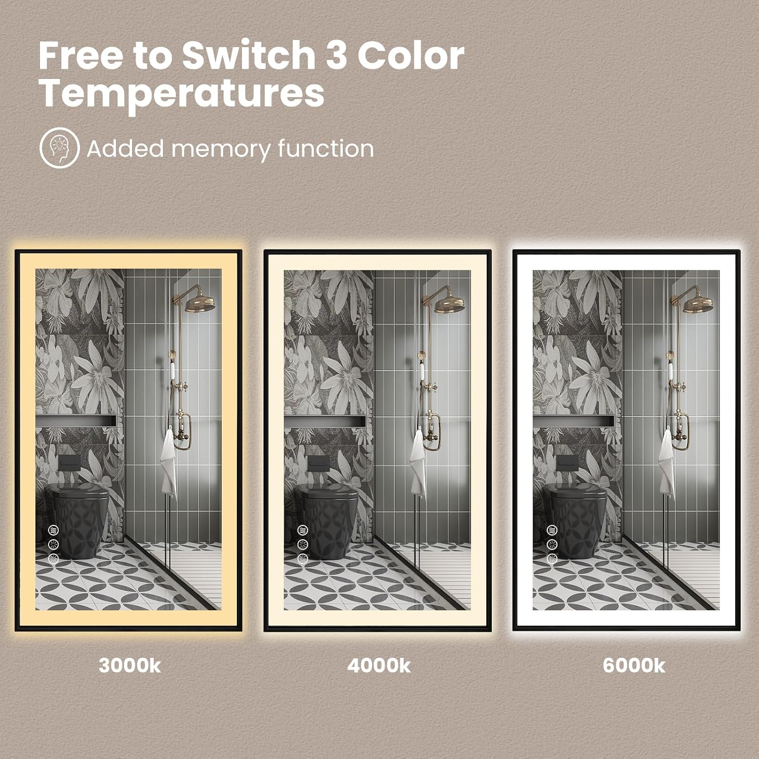 Amorho 55" X40" LED Bathroom Mirror with Black Frame, Front Light and Backlit(Controlled Separately), Stepless Dimmable, Anti-Fog, Shatter-Proof, 3 Colors, Memory