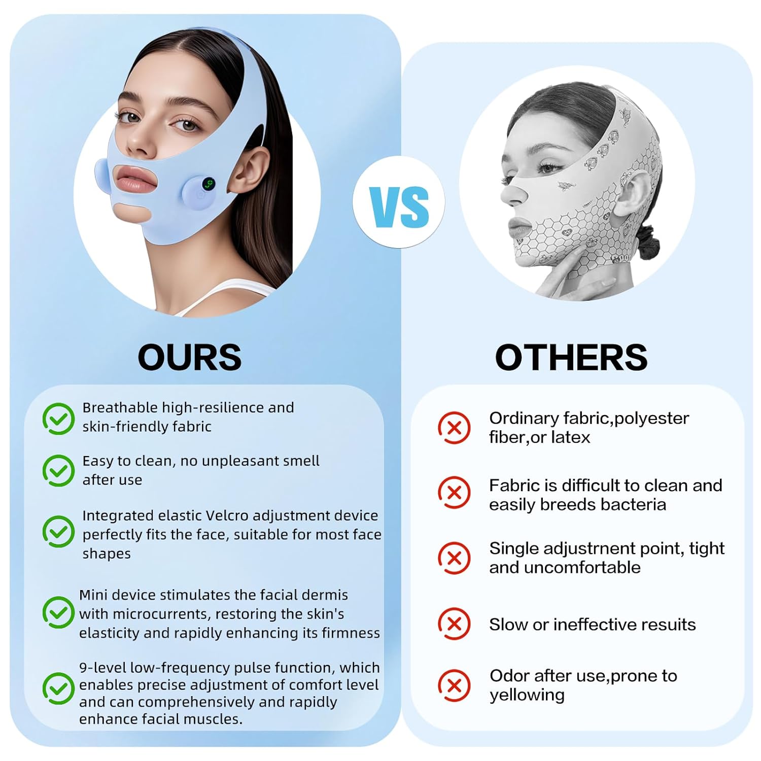• Experience visible facial contouring with our V-line shaper. Its targeted physical lifting action tightens the jawline, visibly reduces the appearance of a double chin, reshapes masseter muscles, and helps prevent sagging cheeks for a sculpted look.