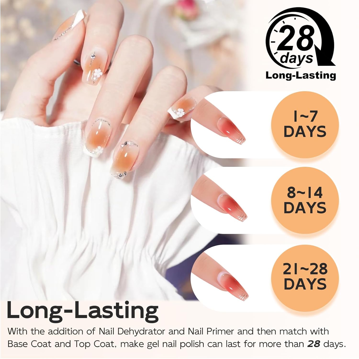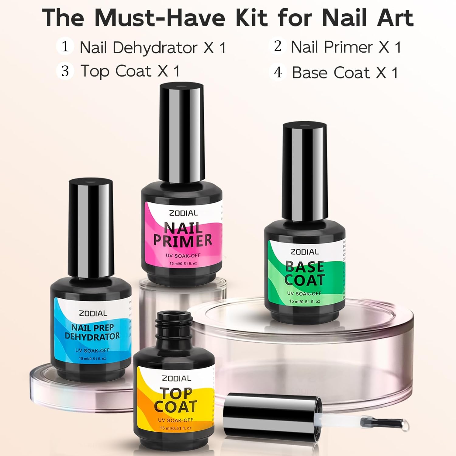 • High-Quality and Protective: ZODIAL Nail Dehydrator and Primer with Glossy No Wipe Top Coat and base, with proper application, can last for 28+ days with a perfect shine. The flexible top coat avoids nicks, chips, or smudges. Ideal Valentine's Day beauty gifts sets for her.You Will Receive: 4 bottles of 15ml gel polish, respectively one bottle of nail prep dehydrator,one bottle of nail primer,one bottle of base coat,one bottle of gloss top coat