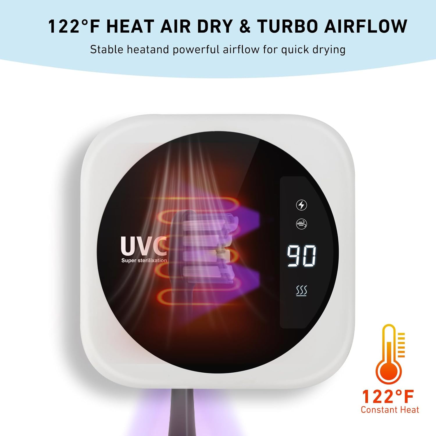• 【LED SMART SCREEN】-Display countdown for cleaning and drying.Battery powered: 90s for cleaning and 480s for heat air dry.Plug into the socket: cleaning for 99s, heat air dry for 1800s.