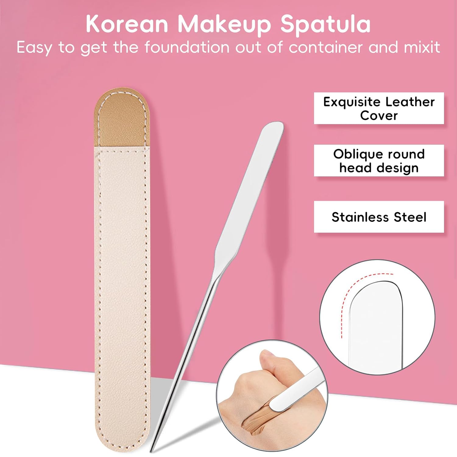 • ★【DURABLE MATERIAL】:The foundation mixing tray made of thickened stainless steel with smooth texture, friction-resistant, non-cracking, easy to clean and wipe off. The Korean foundation spatula is made of high-quality stainless steel, flat head design for easy to get out of foundation from container or mix foundation, eye shadow lipstick nail polish, etc