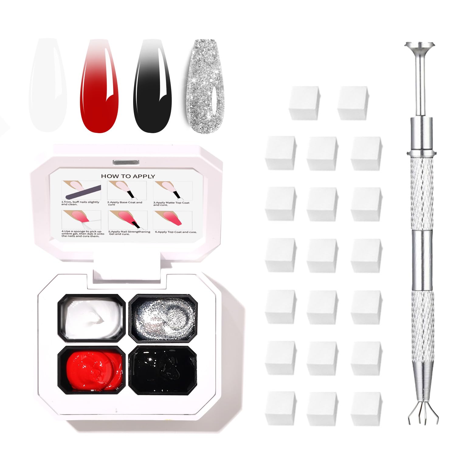 • Included Components : 4-color set of ombre gel, 20 nail sponges, 4-claws metal grabber