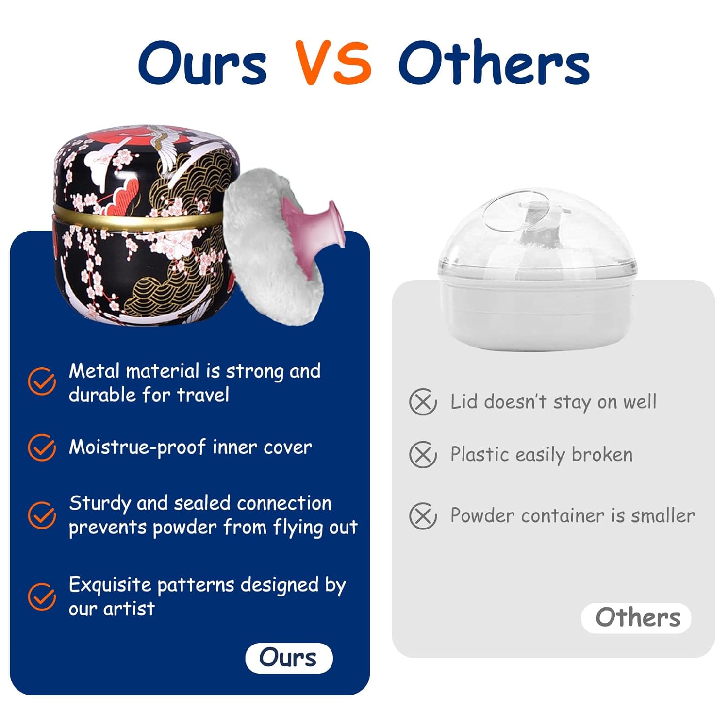 • GORGEOUS POWDER BOX: our powder case is made of tinplate, not easy to break and fade after being dropped, also can be used for a long time. the surface of the powder container has exquisite patterns designed by our artist, bring visual enjoyment.