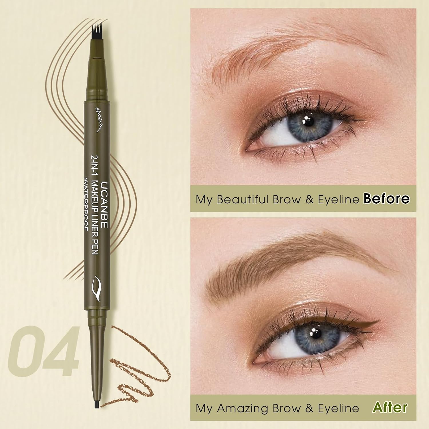 • 【Dual-Ended Eyebrow Pen & Gel Liner Pencil】UCANBE Innovative 2-in-1 eyebrow pen features eyebrow pencils for women with 4 micro-fork tips on one end to effortlessly fill colors in brow gaps and draw natural hair-like strokes, and on the other end, a gel eyeliner pencil with creamy formula glides on easily to create subtle lines, precise definition, intensely smokey vibes and custom brow & eyeline makeup looks.