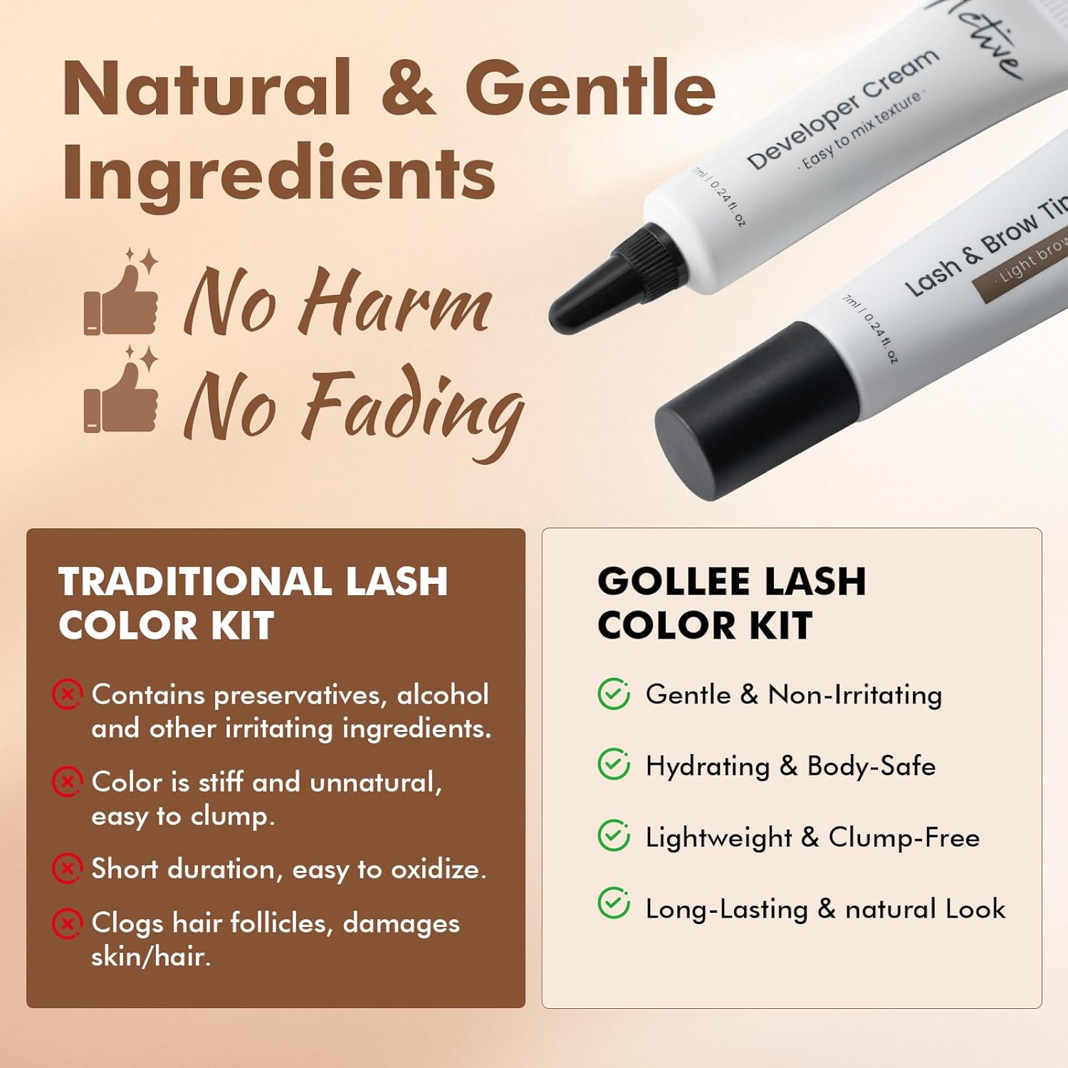 Lash Color Kit Light Brown Lasting for 4 Weeks Professional Eyelash & Eyebrow Color Kit with Natural Looking Safe Ingredients Easy to Use for Salon & Home