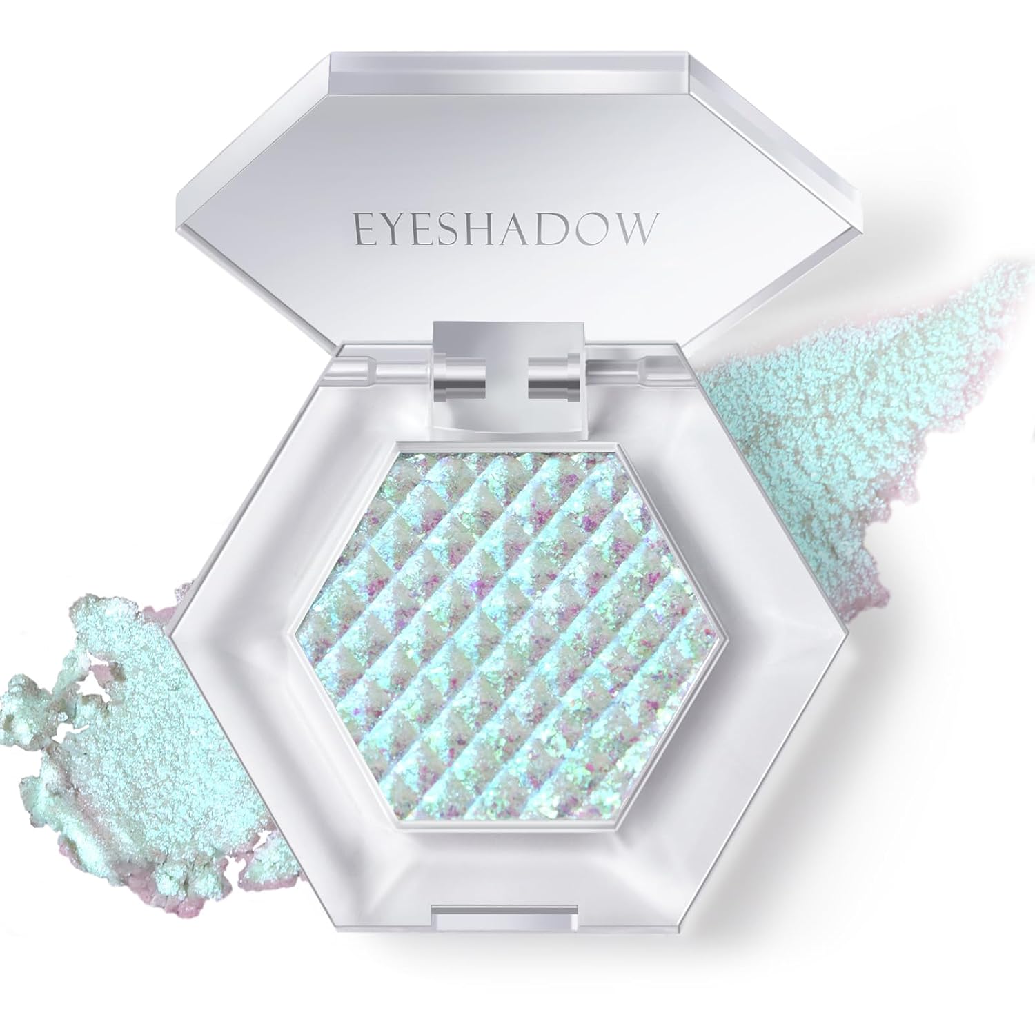 Chameleon Mermaid White Glitter Eyeshadow, Cream to Powder Shimmer Multichrome Single Eyeshadow, Sparkling Holographic Color Shifting Eye Brightener Highlighter Makeup Palette 01