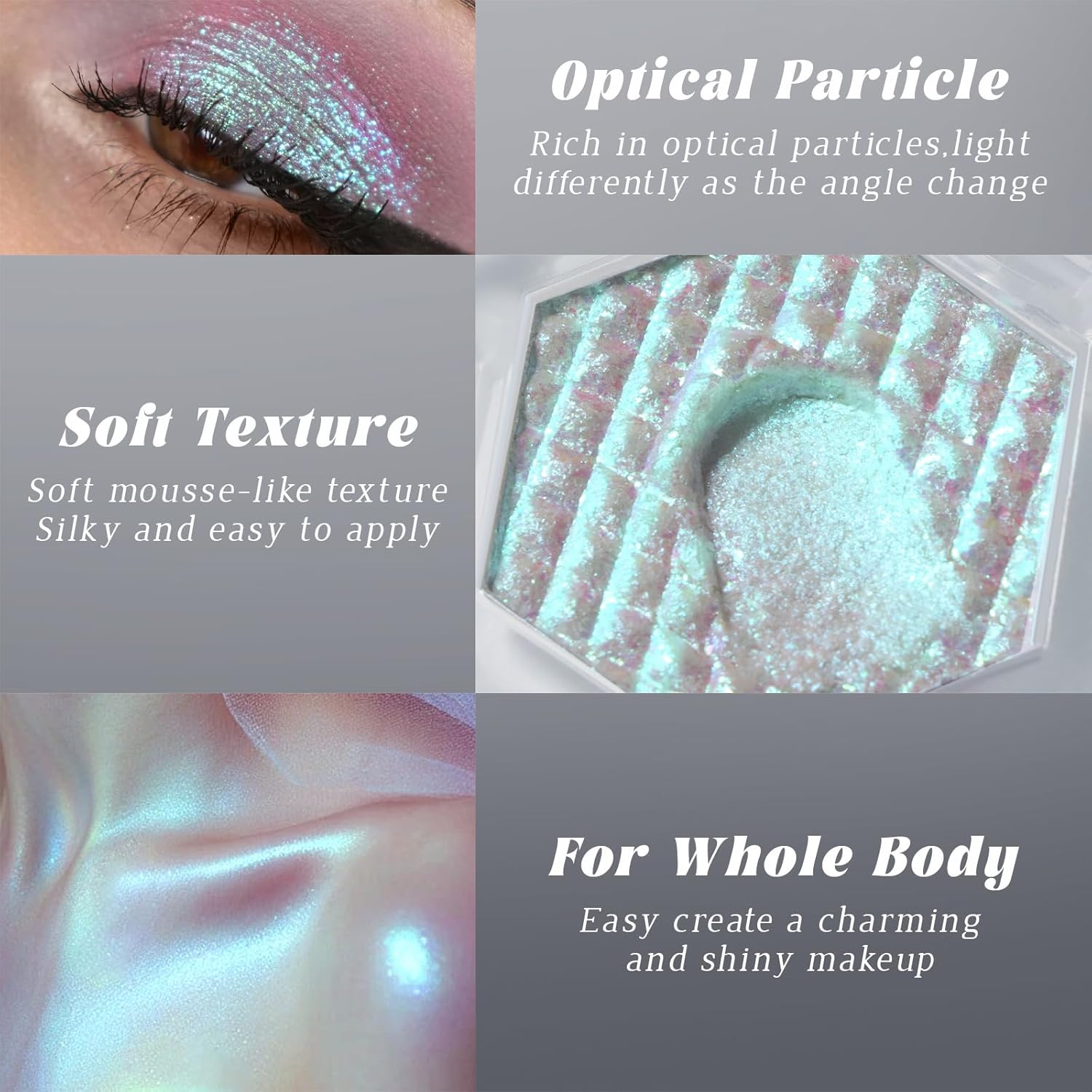 • Chameleon Mermaid Eyeshadow: Intense Color Shifting, Different light and angle will present different colors, holographic glitter eyeshadow will bring you special eye makeup