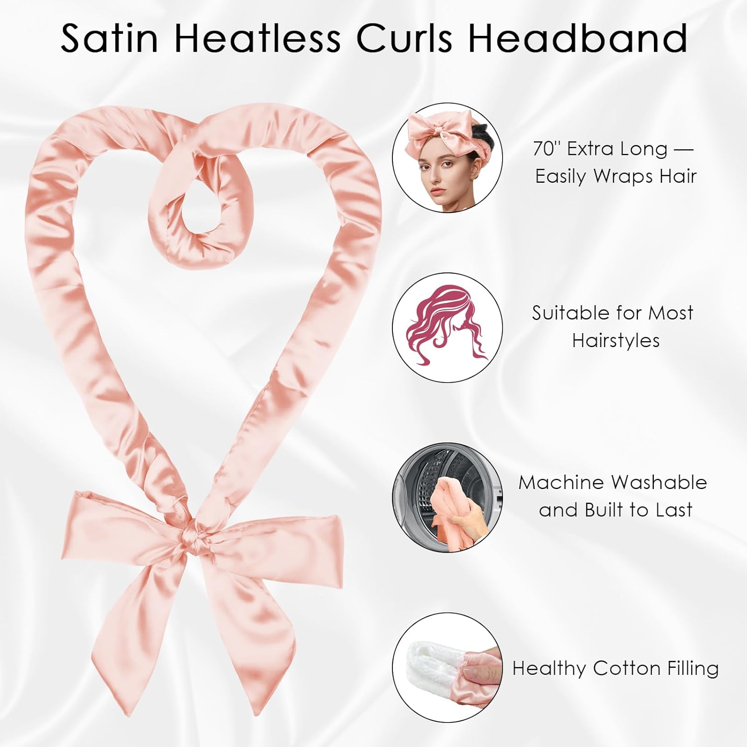 • Heatless Curls: This 70" long overnight curls headband features a non-heating design, avoiding heat damage to the hair, making it perfect for use while sleeping. Enjoy a comfortable sleep and wake up to beautiful, healthy curls and heatless waves