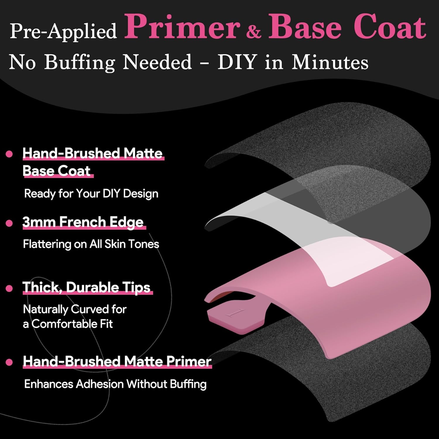 • Pre-Coated with Primer & Matte Base: Instant Art-Ready, each toenail press ons tip comes with hand-applied primer and base coat, ready for design. No buffing needed! The matte finish allows easy DIYβ€”paint, decorate, or add rhinestones, get a salon-quality DIY pedicure in just 10 minutes, even if you're a beginner!