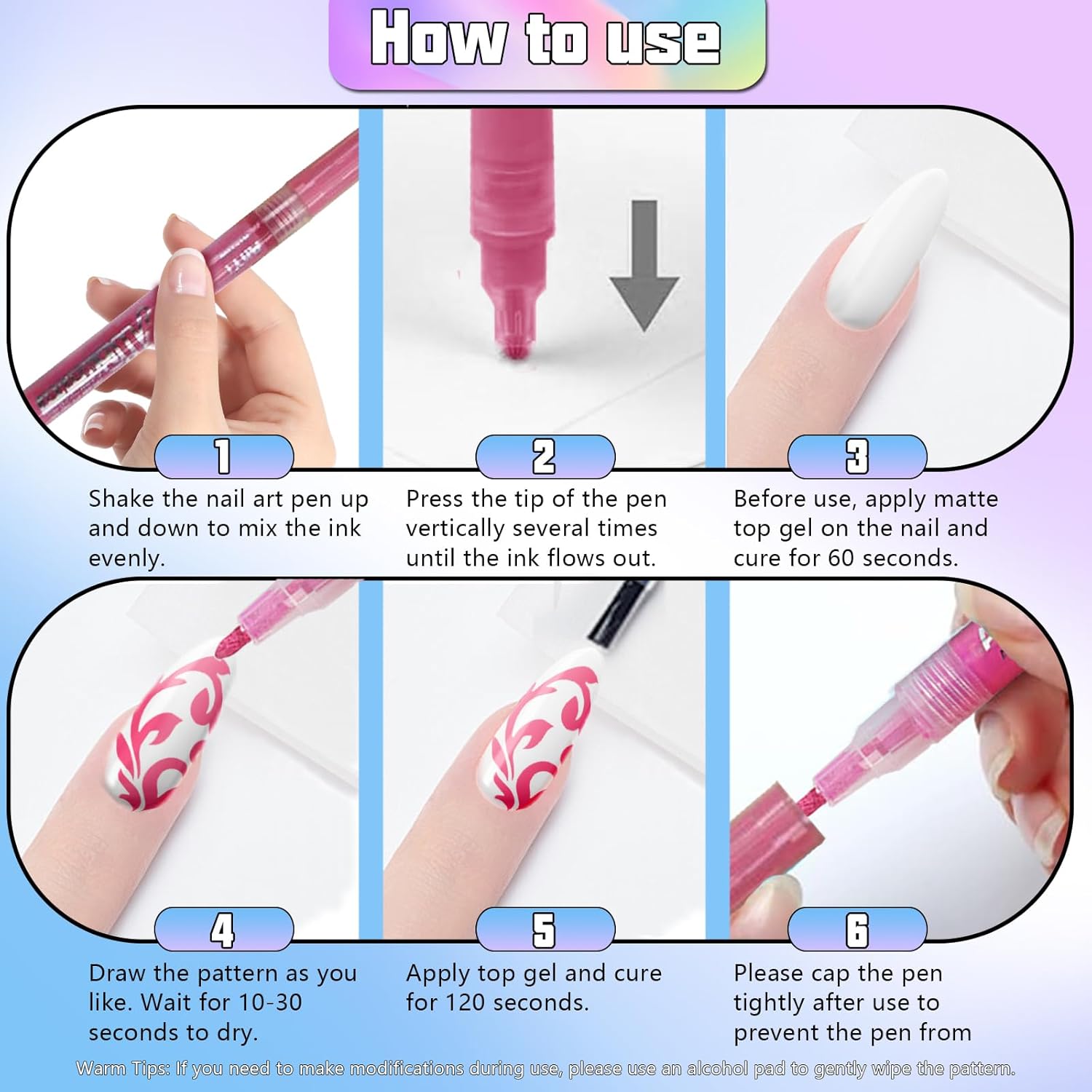• 【Suitable for Multiple Uses】These nail art pens are not only suitable for nails, but also perfect for art creation on other surfaces such as paper, cardboard, and even phone cases, bottles, and drinking glasses. Their versatility makes them a great tool for craftsmen and artists who love to try other mediums besides nail art.