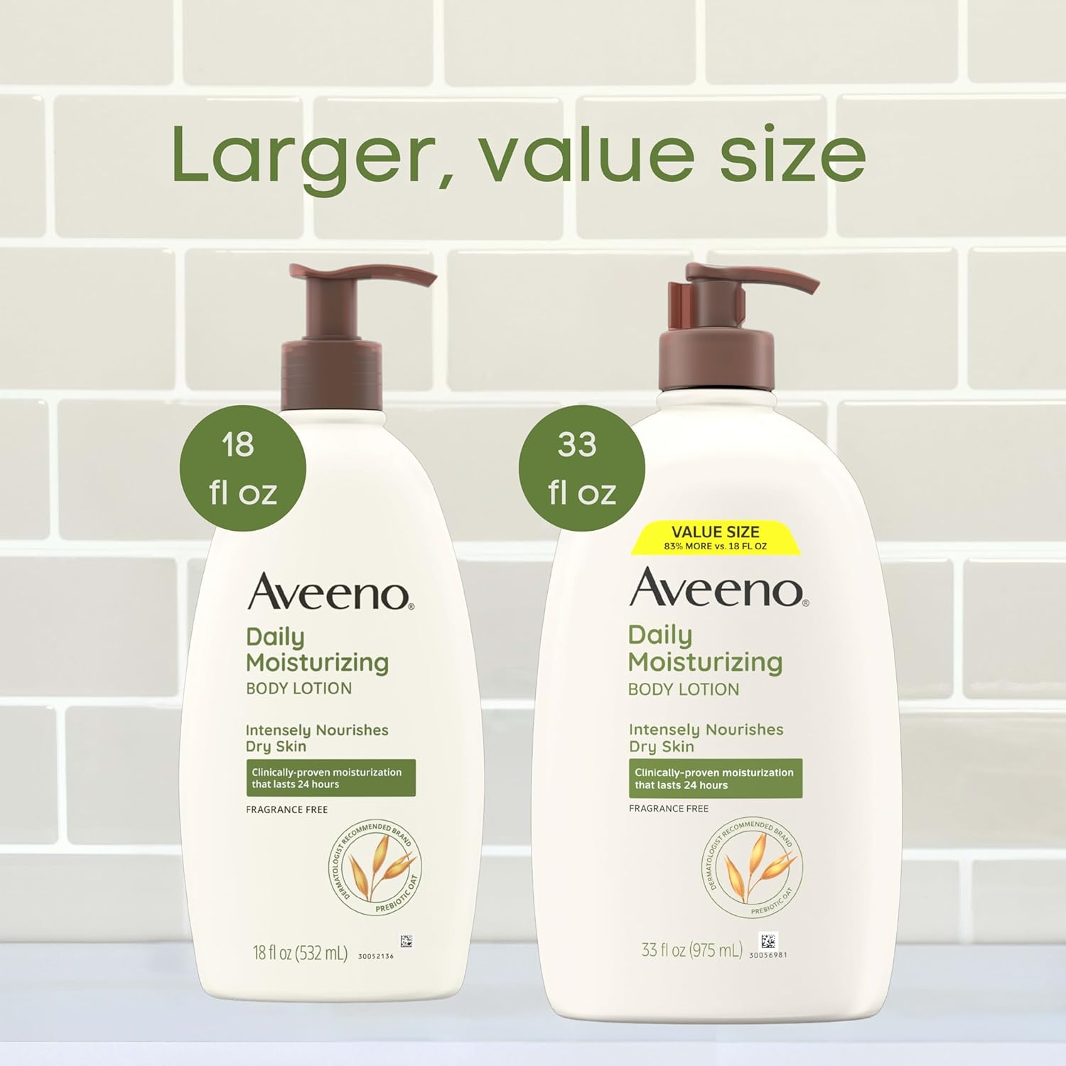 Aveeno Daily Moisturizing Body Lotion with Soothing Prebiotic Oat, Gentle Lotion Nourishes Dry Skin, Paraben-, Dye- & Fragrance-Free, Non-Greasy & Non-Comedogenic, Value Size, 33 fl. oz