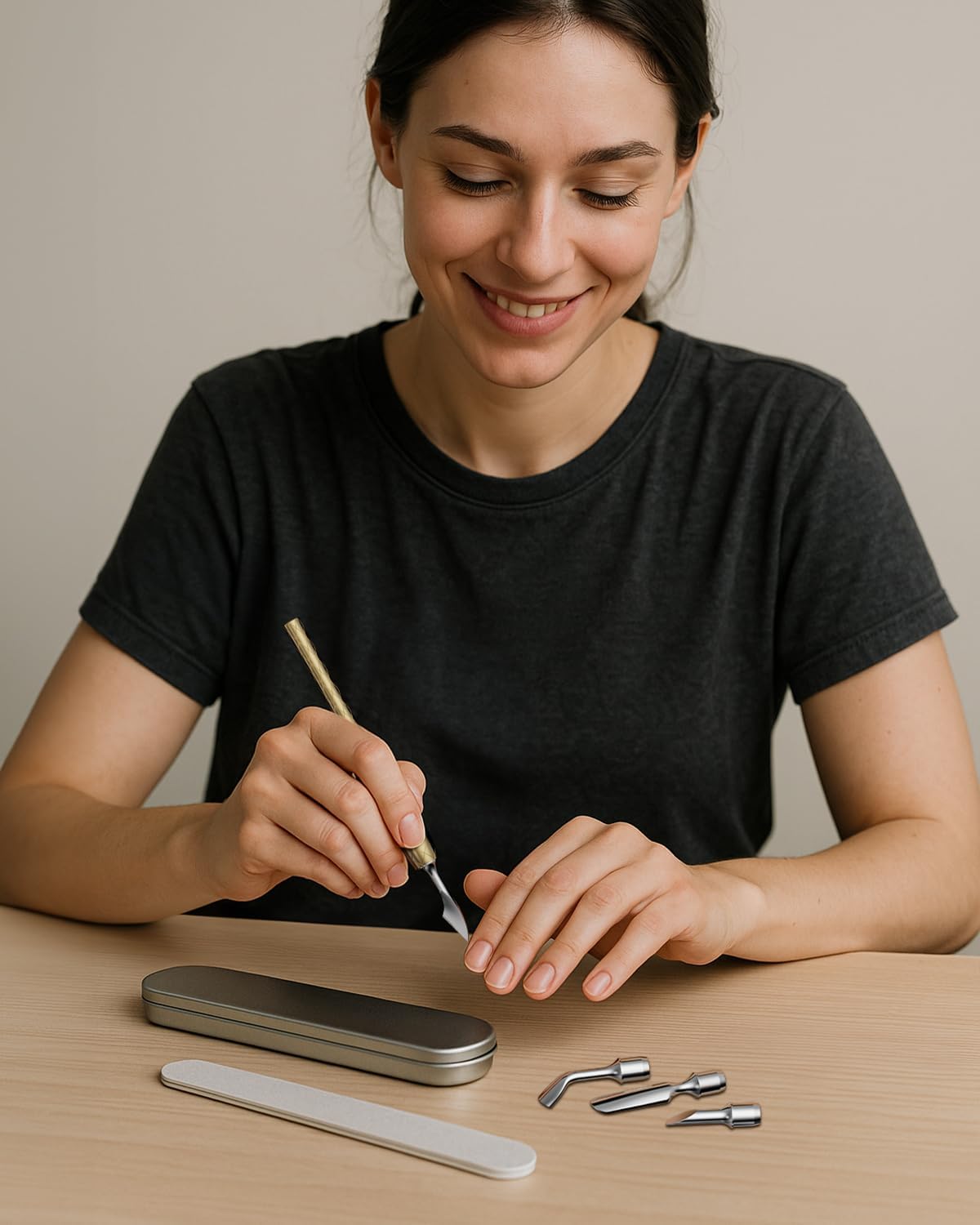 • ✅ SURGICAL-GRADE STAINLESS STEEL– Each head (Curved, Smooth, Chisel, Horseshoe) is forged in anti-rust stainless steel. Blades stay sharp for precise dead skin removal, cuticle lifting, and nail groove cleaning.