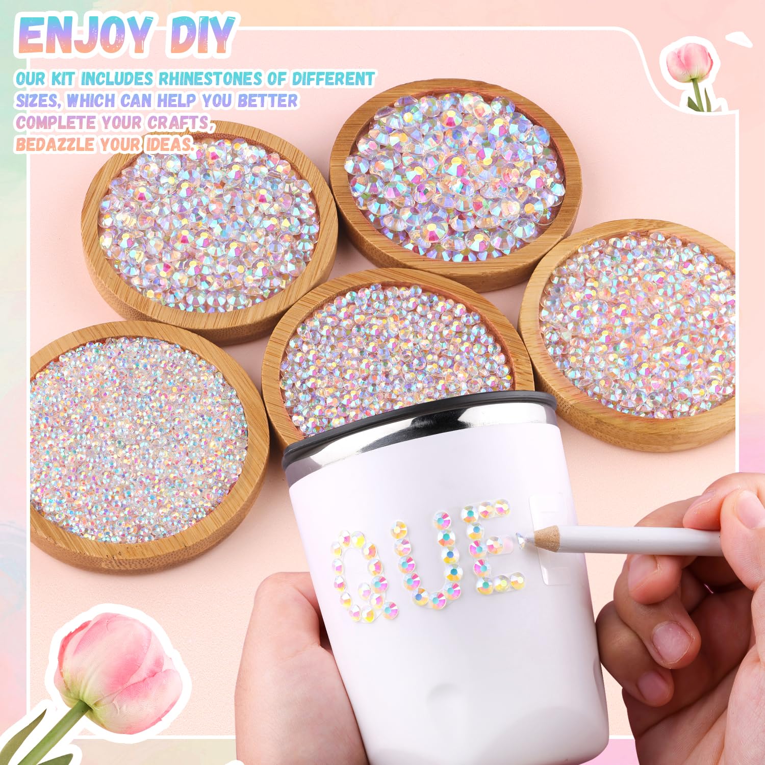 • EASY TO USE – This kit is perfect for various crafting projects, featuring complete tools for precise rhinestone application—no extra tools needed. The sturdy 24-grid container keeps rhinestones organized by size and color for easy access and storage.