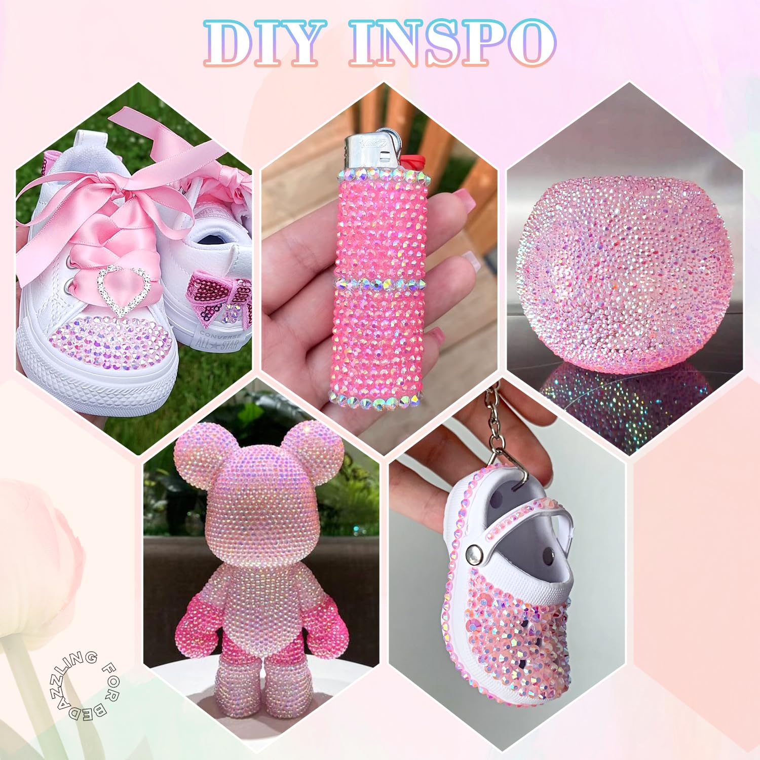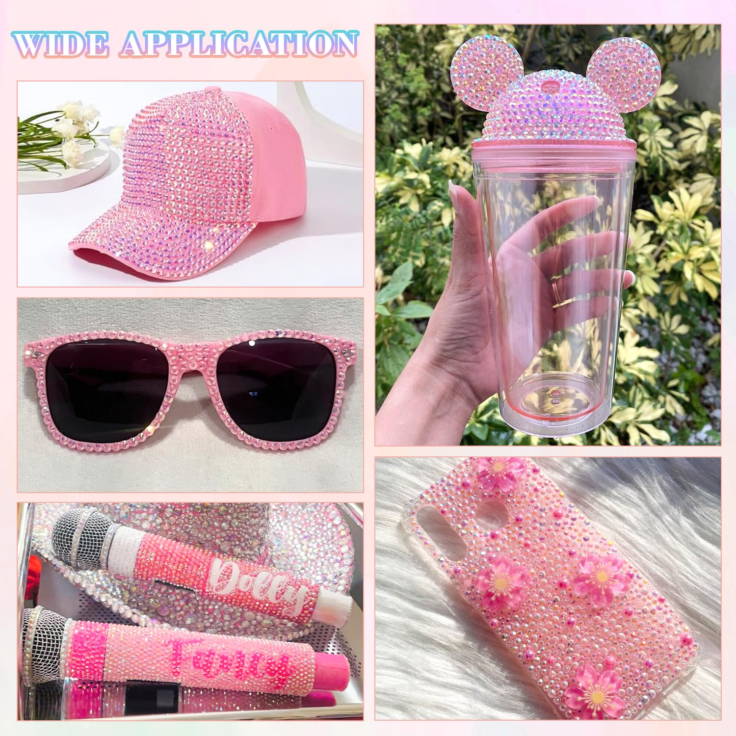 • PACKAGE CONTENT – This all-in-one bedazzler kit includes everything you need to start creating dazzling designs: 1 box of Light Pink AB rhinestones with 24 grids (approx. 30,000 pcs of bedazzling rhinestones assorted size SS6/10/16/20/30 ), 1 precision tweezers, 1 pickup pen for handling small gems, and 3 tubes of B7000 jewelry glue for secure application.