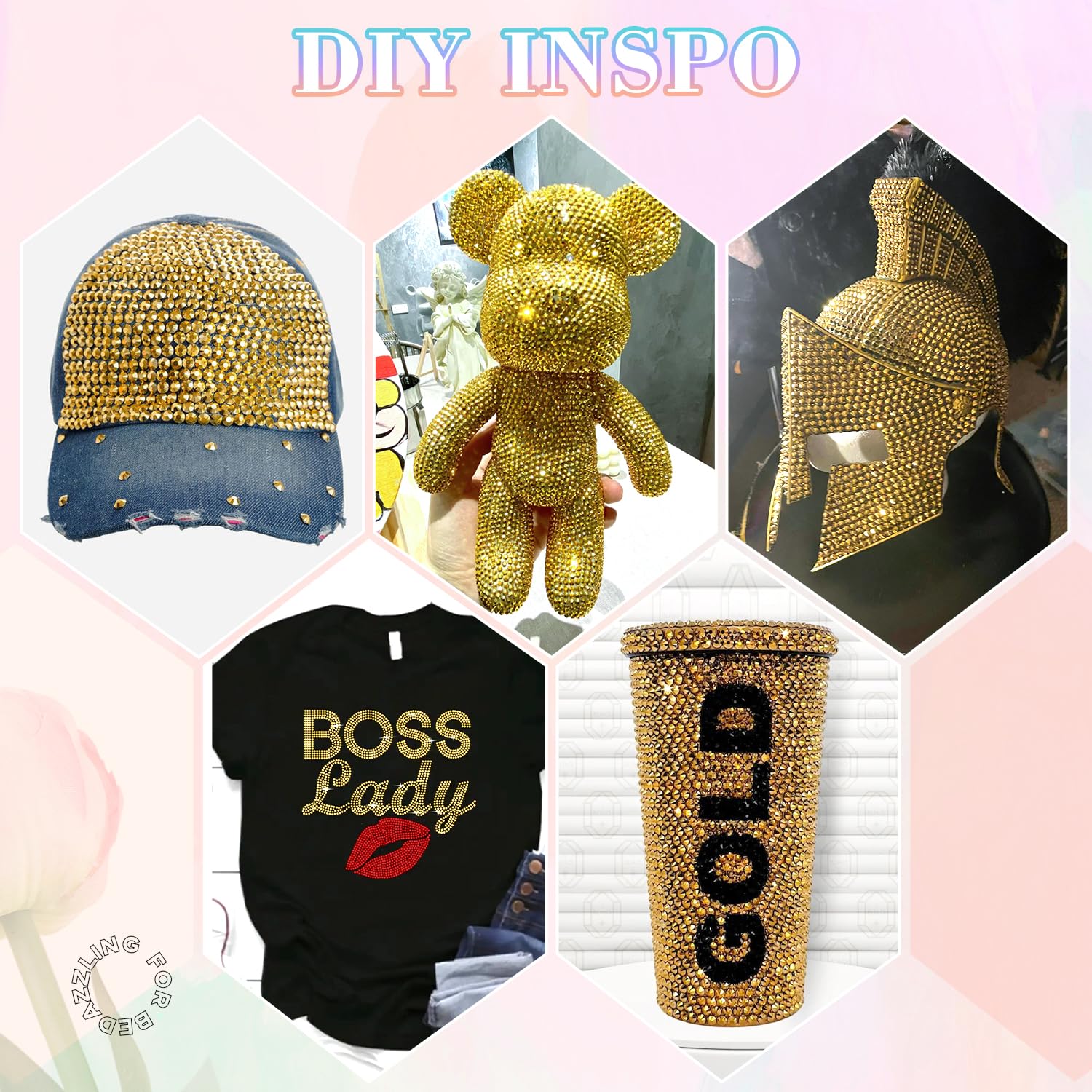 • PACKAGE CONTENT – This all-in-one bedazzler kit includes everything you need to start creating dazzling designs: 1 box of Gold rhinestones with 24 grids (approx. 30,000 pcs of bedazzling rhinestones assorted size SS6/10/16/20/30 ), 1 precision tweezers, 1 pickup pen for handling small gems, and 3 tubes of B7000 jewelry glue for secure application.