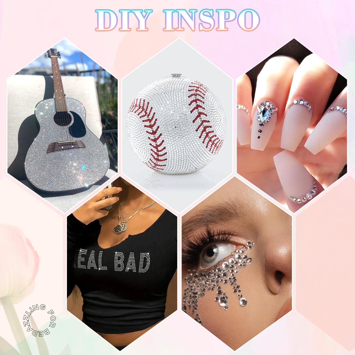 • PACKAGE CONTENT – This all-in-one bedazzler kit includes everything you need to start creating dazzling designs: 1 box of Clear rhinestones with 24 grids (approx. 30,000 pcs of bedazzling rhinestones assorted size SS6/10/16/20/30 ), 1 precision tweezers, 1 pickup pen for handling small gems, and 3 tubes of B7000 jewelry glue for secure application.