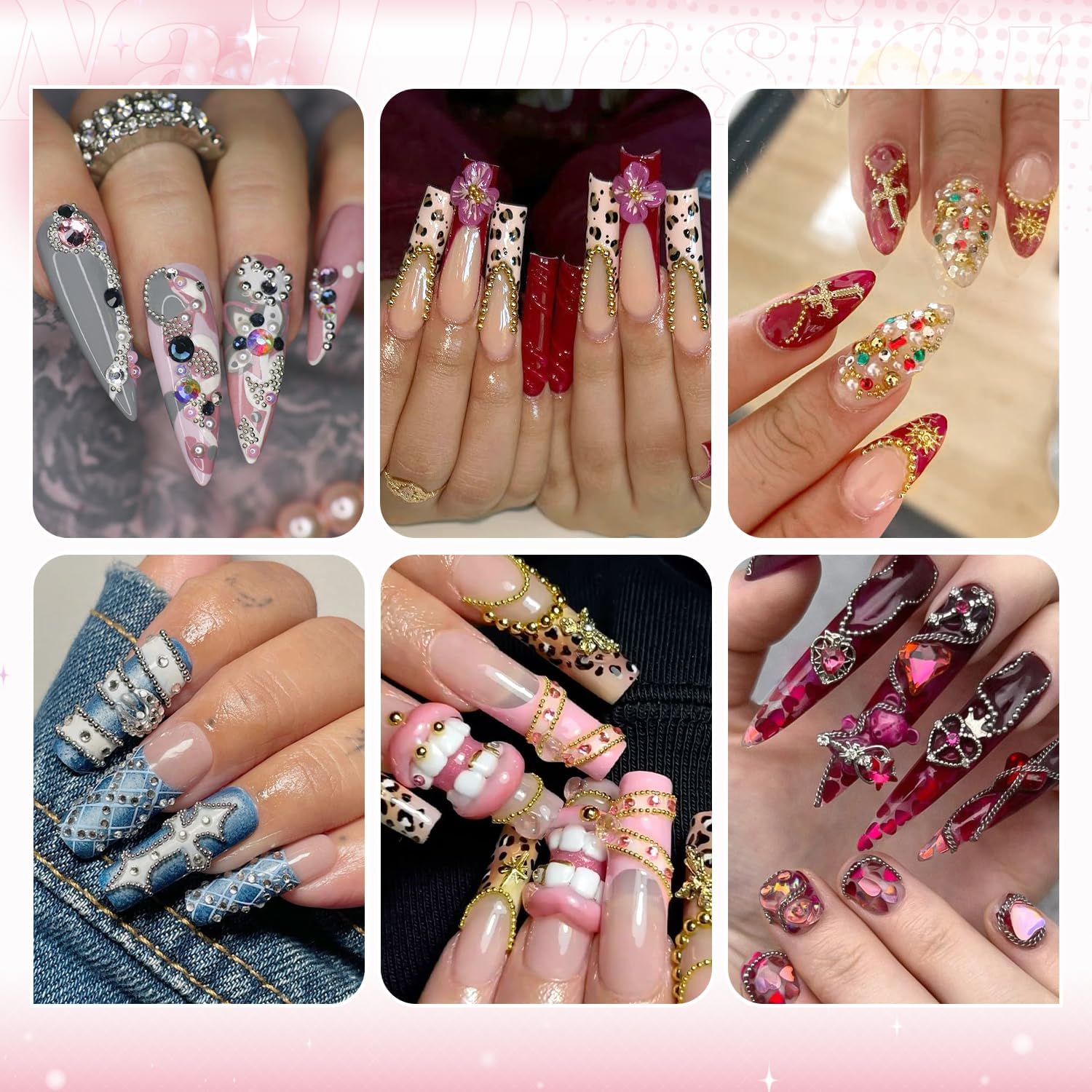 • Easy to Use -- These charms are easy to apply on natural or artificial nails by cleaning the nail surface, applying glue gel, then placing the charms with tools. Use a UV/LED lamp to cure for 60-90s. Do remember apply a top coat on them for long-lasting shine