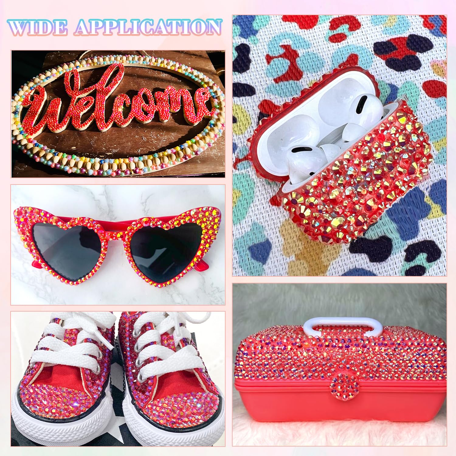 • PACKAGE CONTENT – This all-in-one bedazzler kit includes everything you need to start creating dazzling designs: 1 box of Red AB rhinestones with 24 grids (approx. 30,000 pcs of bedazzling rhinestones assorted size SS6/10/16/20/30 ), 1 precision tweezers, 1 pickup pen for handling small gems, and 3 tubes of B7000 jewelry glue for secure application.