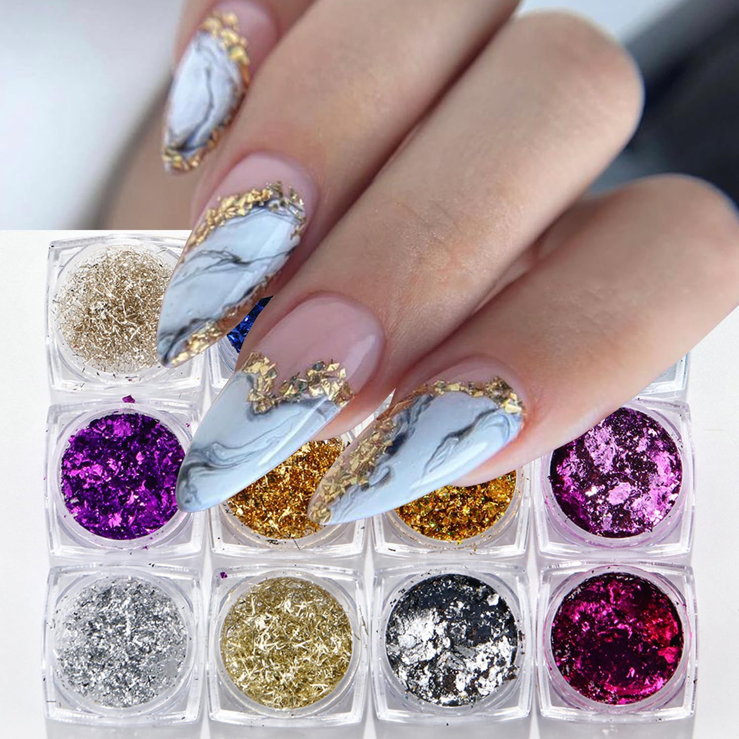 • Package: You will get 12 colors/12 bottles gold foil nail art sequins for acrylic nails supply,glittering sequins design and satisfy your rich imagination of nail DIY.
