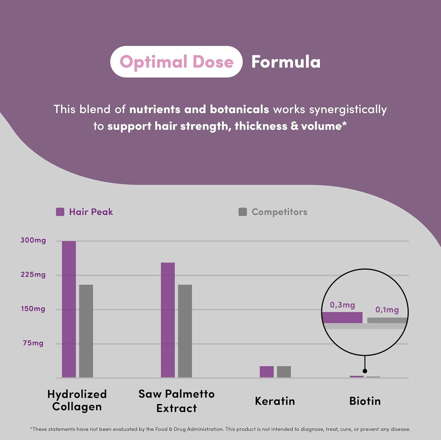 • SUPPORTS HAIR STRUCTURE: Hair Peak combine key nutrients including hydrolyzed collagen, biotin, and keratin to help maintain healthy hair structure and support natural hair appearance from within.*