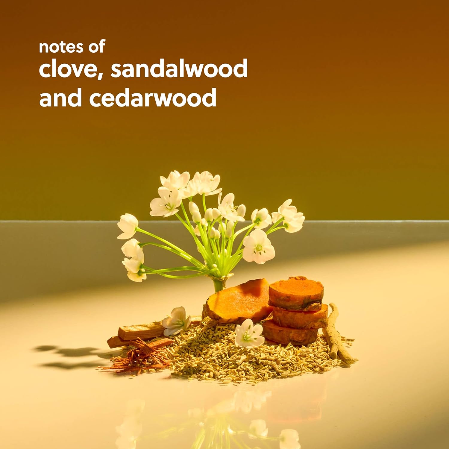 • A grounding, woodsy scent that emits a warm aroma with notes of clove, sandalwood and cedarwood