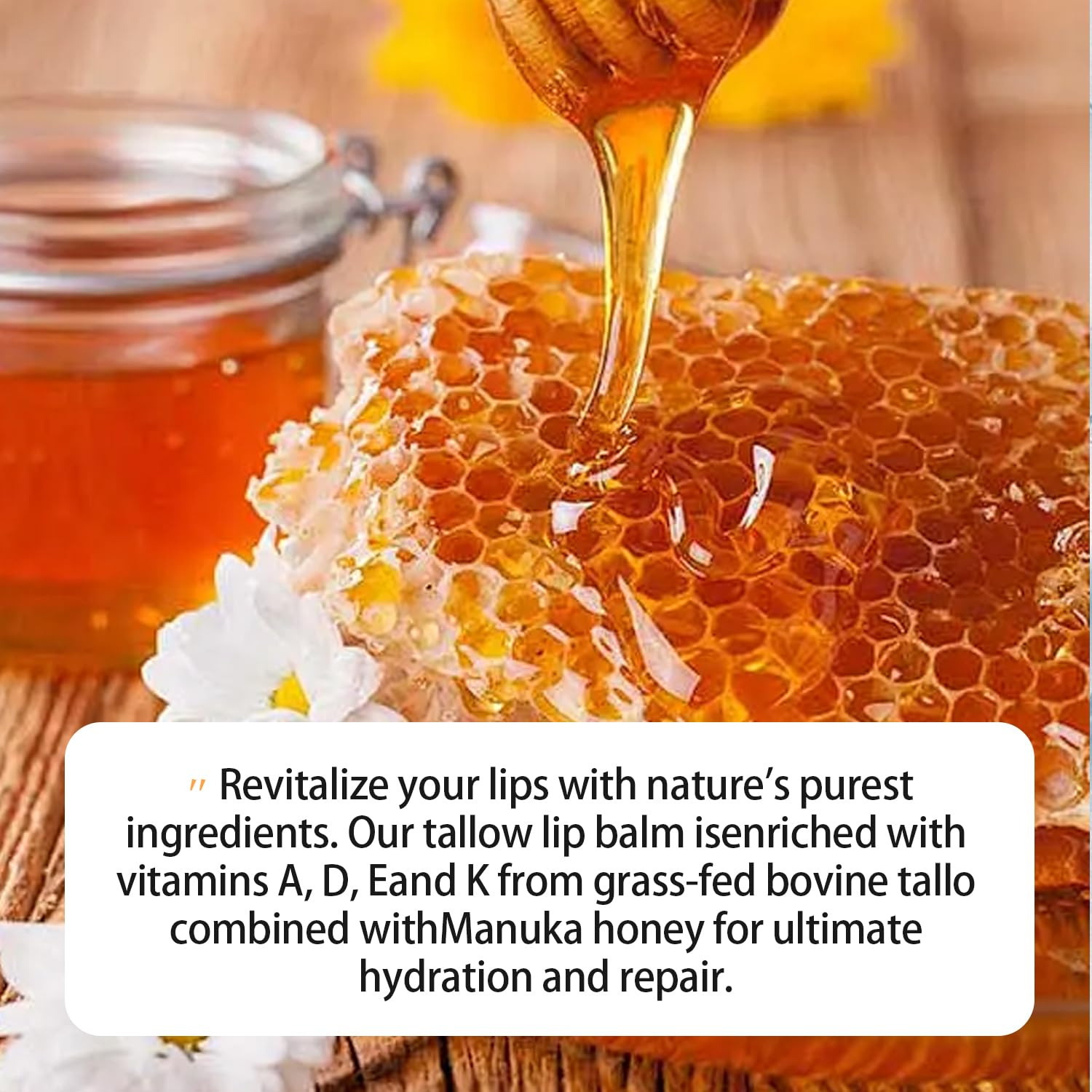 Tallow Lip Balm With Grass-Fed Beef Tallow & Manuka Honey Long-Lasting Moisturizing Lip For Cracked and Dull Lip, Natural Balm 5g/0.17oz
