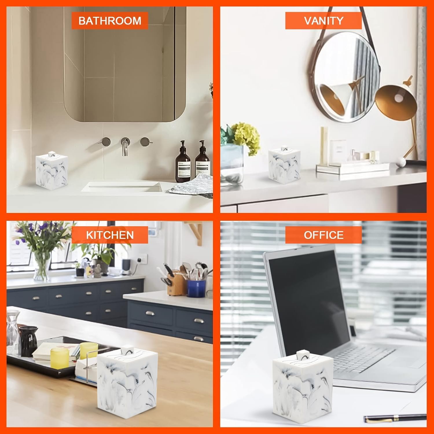 • High-quality Resin materials - Our cotton swab organizer made of 100% resin, The exterior looks like Ceramics and Marble, but it is more drop-resistant than Ceramics and glass. More economical and environmentally friendly than marble