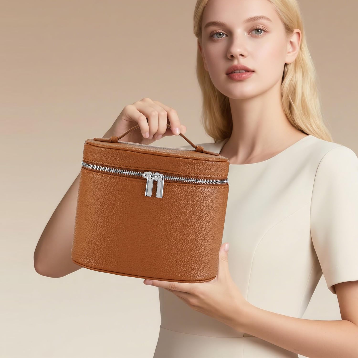 Makeup Bag Vanity Case Cosmetic Bag with Removable Divider Travel Toiletry Bag for Women Portable Make up Box Organizer, Brown