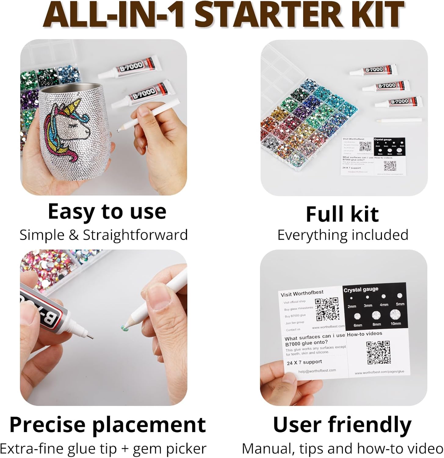 • B7000 Clear Glue for Gemstones -- B7000 glue has strong adhesion and dries clear, waterproof when dried, non-toxic and harmless to the skin. The glue has a precision needle for easy application, they can be applied precisely