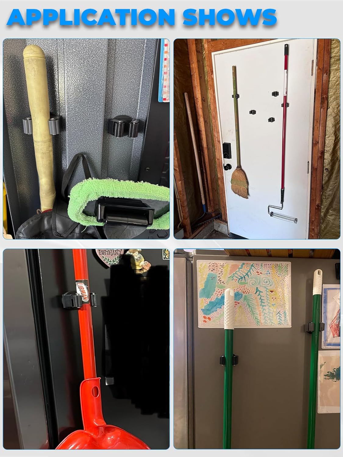• Wide Applications: Magnetic broom mount is designed to hold various household objects to save space, perfect for hang brooms, mops, brushes, baseball bats, etc. Widely use in kitchen, laundry, garage, workshop and outdoors for all your organizing needs!