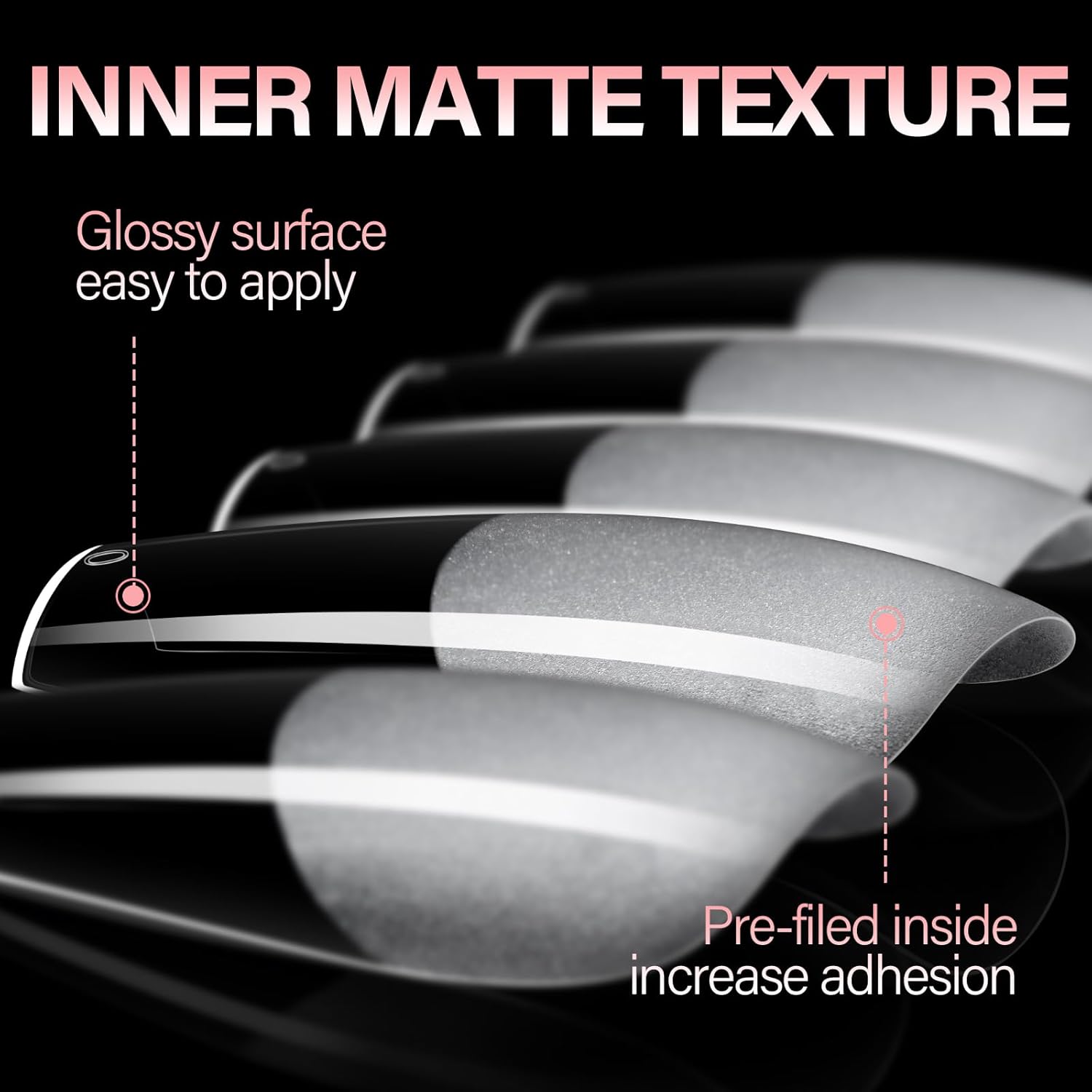 • 【Fits Nail Curvature, Natural & Comfortable, No Scratching】: Designed based on the natural curvature of nails, with edges finely polished to 0.1mm rounded corners. The fake nail fits the natural curve of your nails without air bubbles, ensuring no foreign body sensation and flexible finger movement. The smooth, burr-free surface prevents scratches on clothes or skin, making daily wear safer.